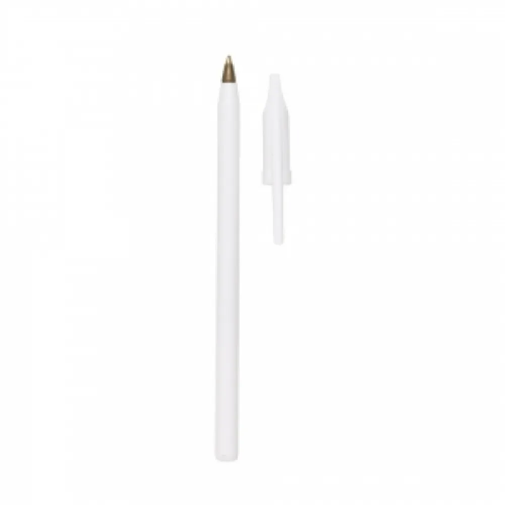 Caneta plástica com tampa. Carga esferográfica azul.