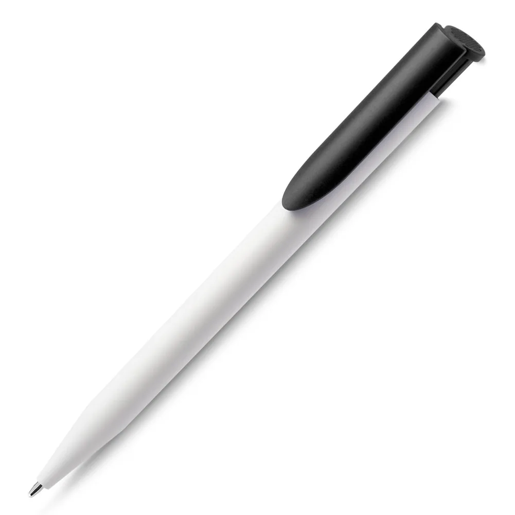 Caneta plástica com carga esferográfica azul 1.0mm e acionamento por clique.