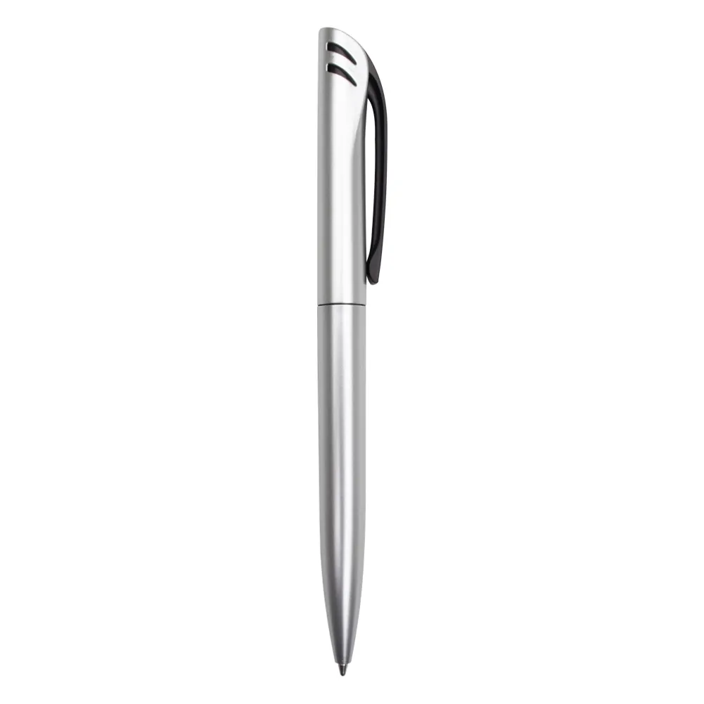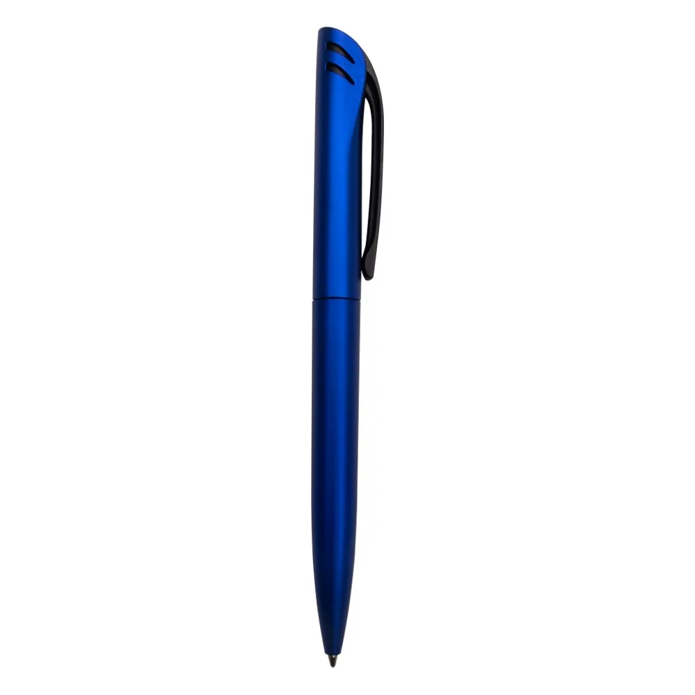 Caneta Plástica com acionamento por rotação e carga esferográfica azul 1.0mm.