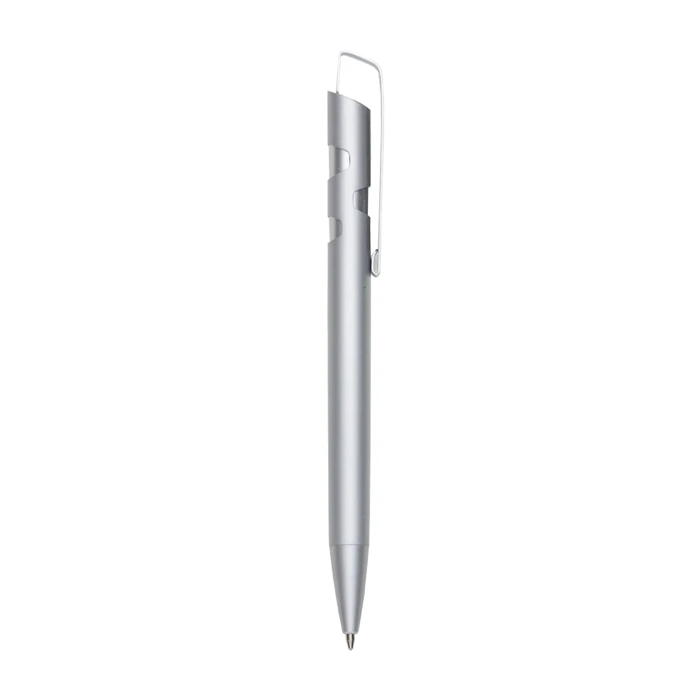 Caneta semimetálica com carga esferográfica azul e acionamento por clique. OBS.: PEDIDO APENAS MÚLTIPLO DE 50 PEÇAS!