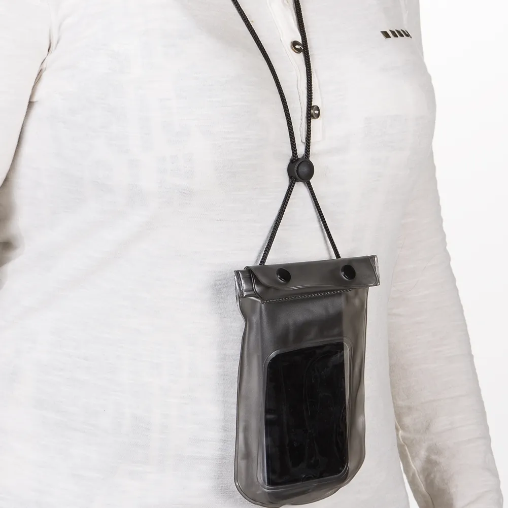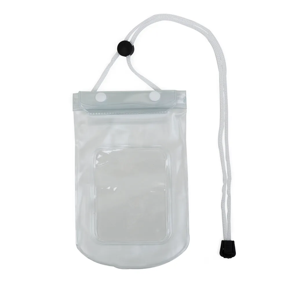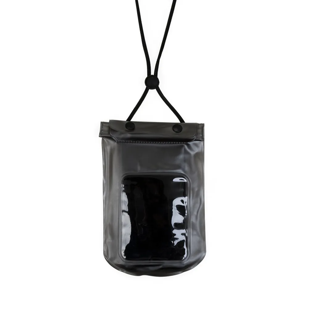 Case impermeável para smartphone, fechamento á vácuo e através de abotoamento, com cordão de nylon, fabricado em PVC.