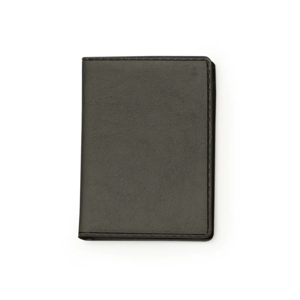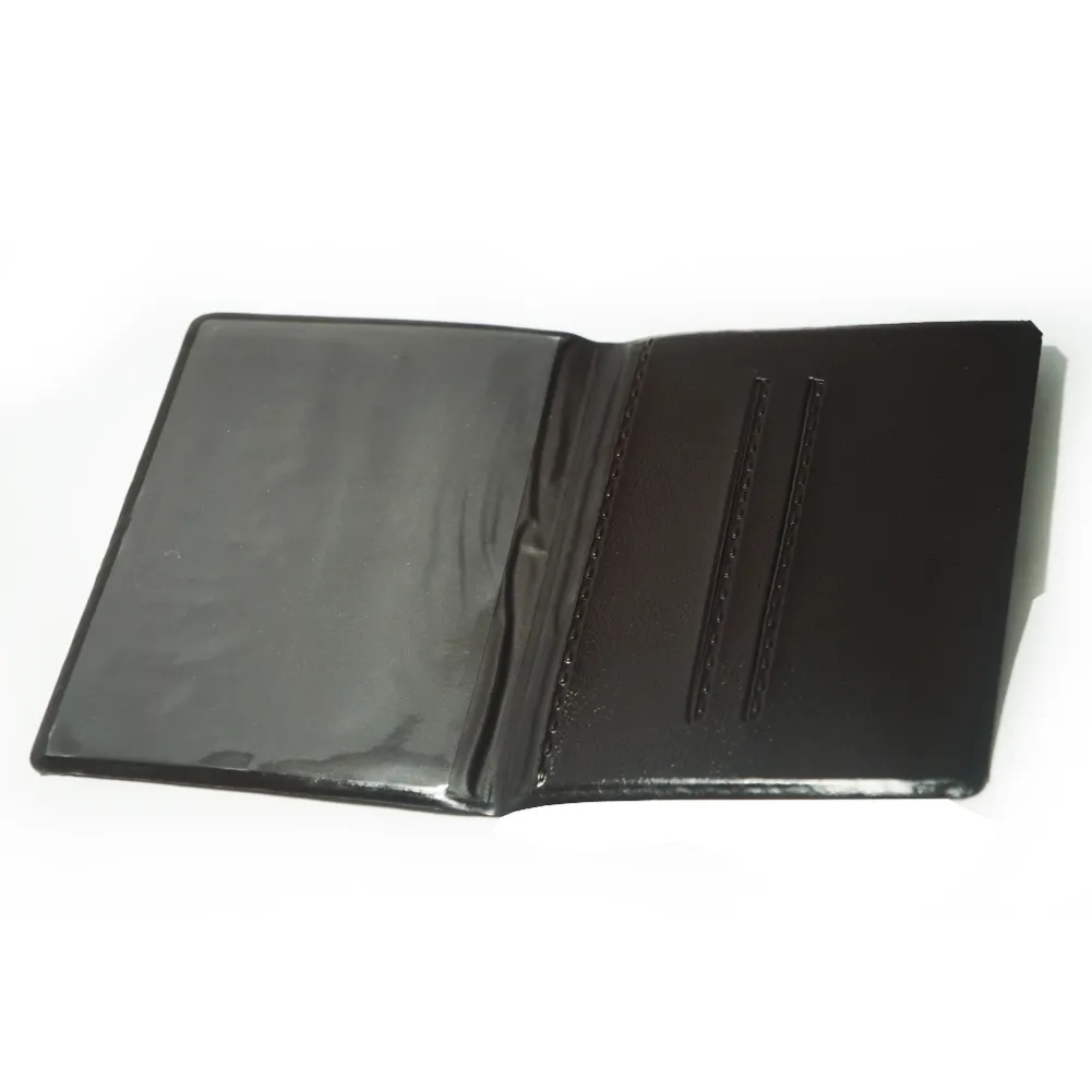 Carteira porta documento em couro sintético de frente e verso liso, parte interna com bolso plástico e duas divisórias para cartões. OBS.: PEDIDOS APENAS MÚLTIPLOS DE 50 PEÇAS!