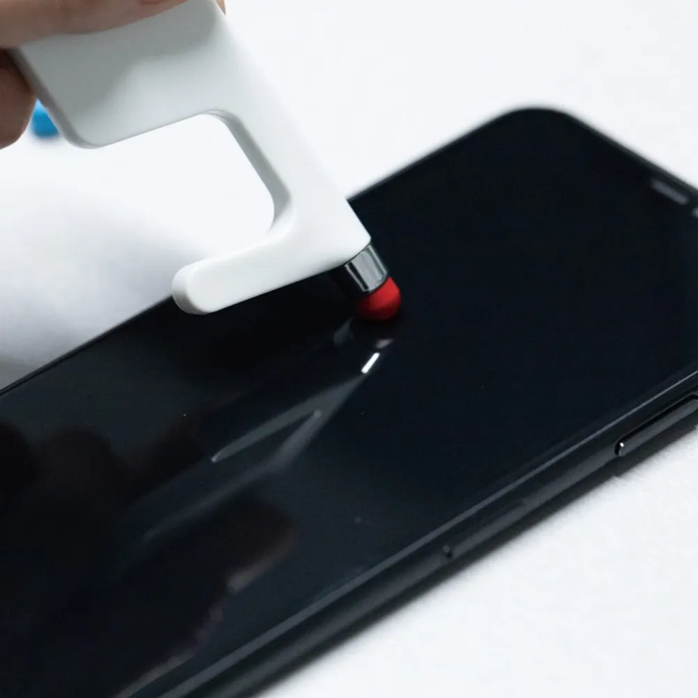 Chaveiro de plástico, material antibacteriano, com as funções: Ponta Touch; Abridor de Garrafas; Aciona superfícies sem o contato físico.