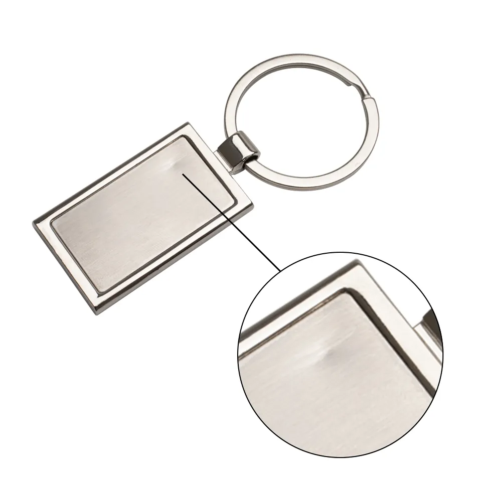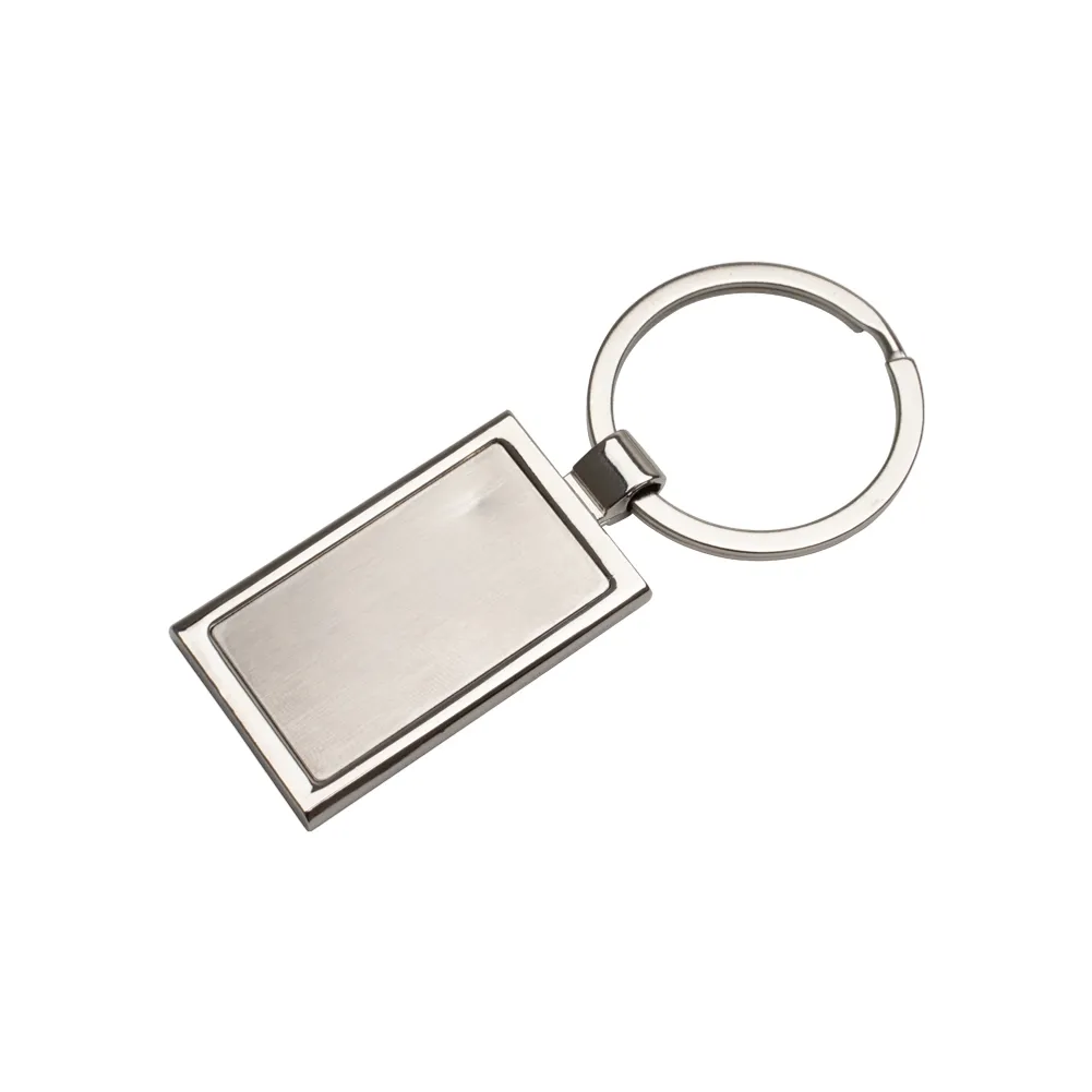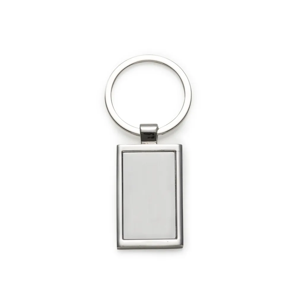 Chaveiro de metal retangular com chapa central, verso liso.
