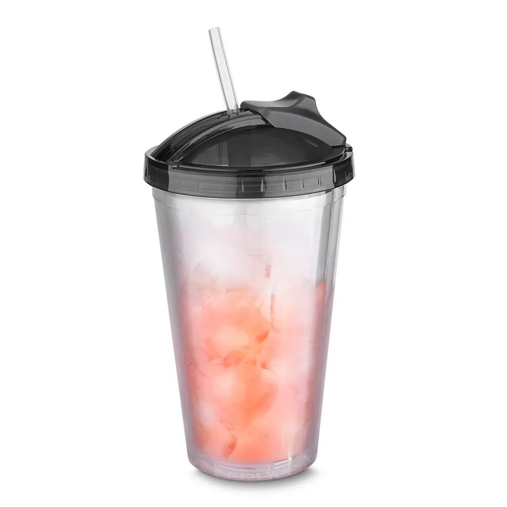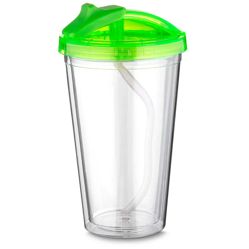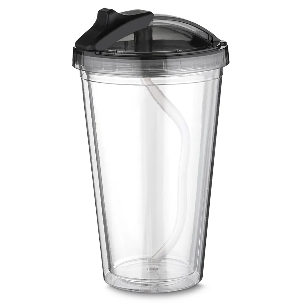 Copo de plástico parede dupla 470 ml com tampa e canudo, plástico utilizado AS (Estireno de acrilonitrilo).