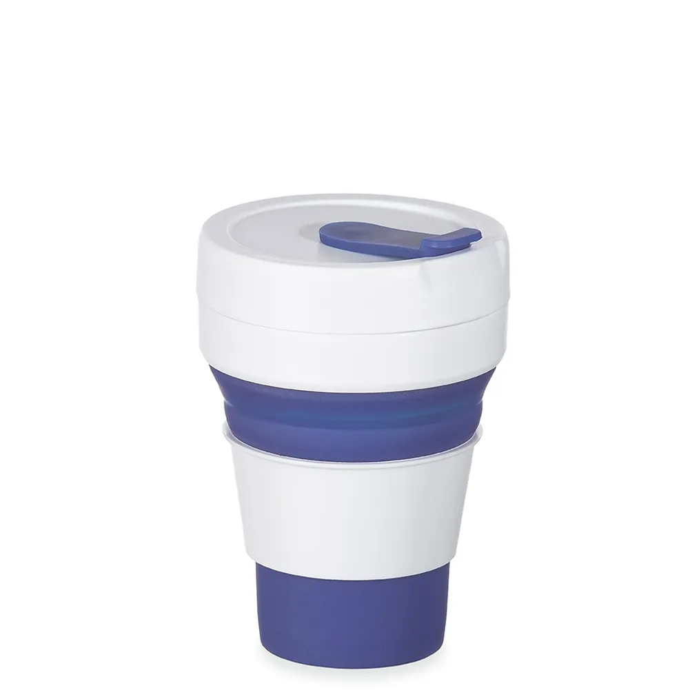 Copo reutilizável retrátil de silicone com capacidade de 355ml.