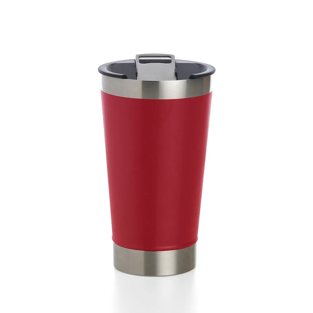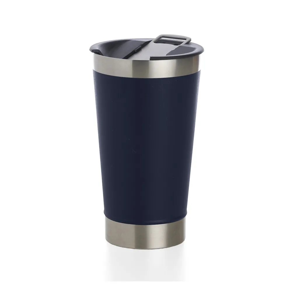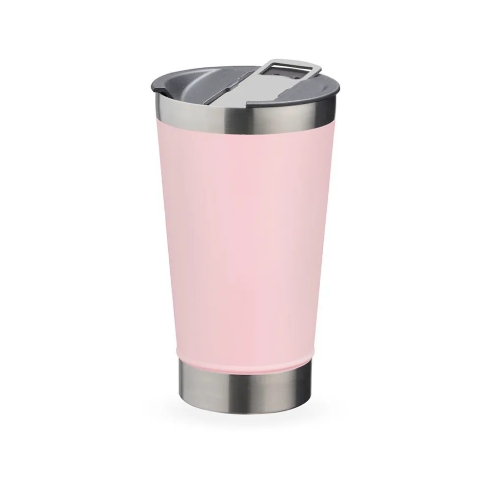 Copo térmico de inox com acabamento liso e capacidade 500ml, material livre de BPA. Contém tampa com abridor.