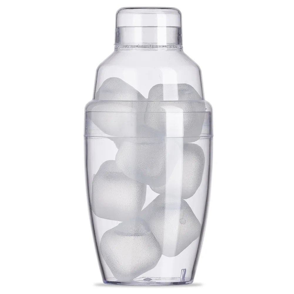 Coqueteleira com 8 gelos ecológicos e capacidade de 230ml. A função do gelo ecológico é manter o seu drink gelado sem alterar o sabor ou concentração da bebida. A coqueteleira possui tampa de pressão com peneira embutida e acompanha tampa de proteção.