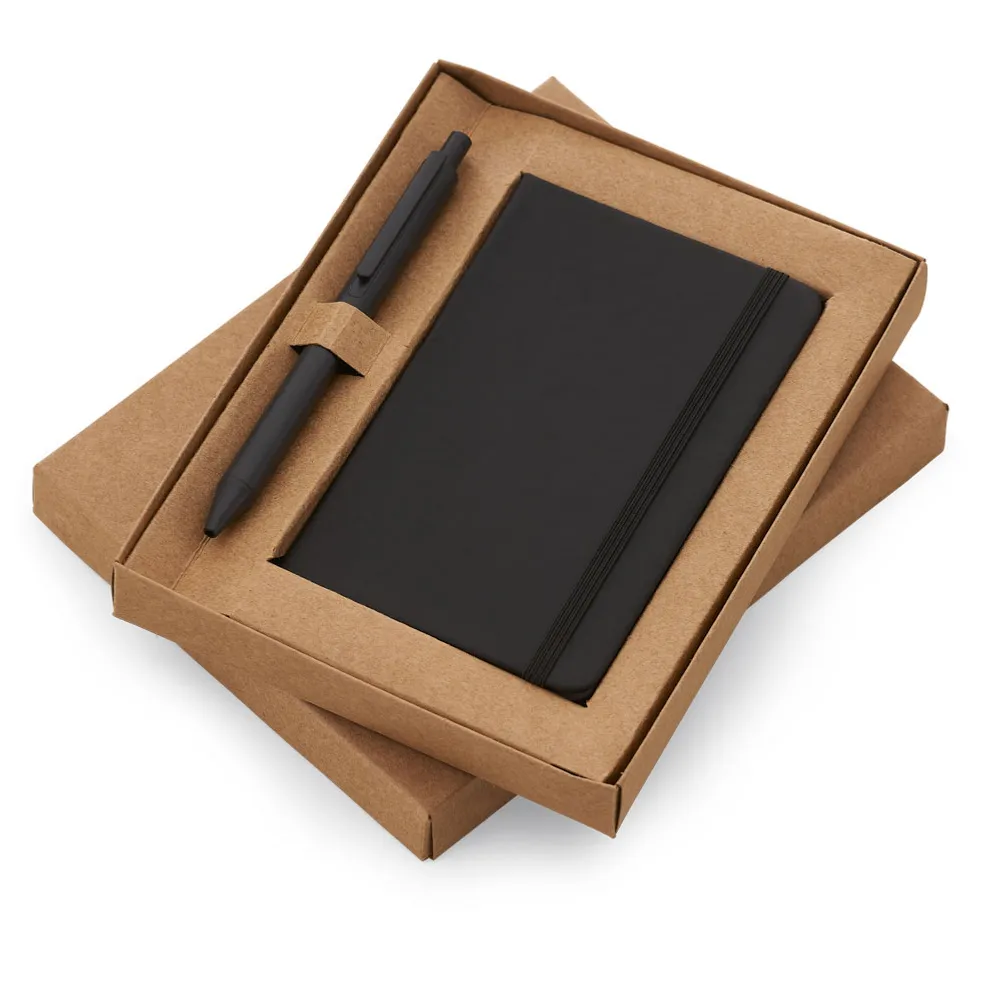 Estojo em papel kraft para mini caderno e caneta. Dimensão do produto: 18,5x15x2,5cm Dimensão para o caderno: 15x9cm Peso do produto: 0,056kg Quant. por caixa: 50pçs Peso da caixa: 3,5kg Medidas da caixa:32x37x47cm