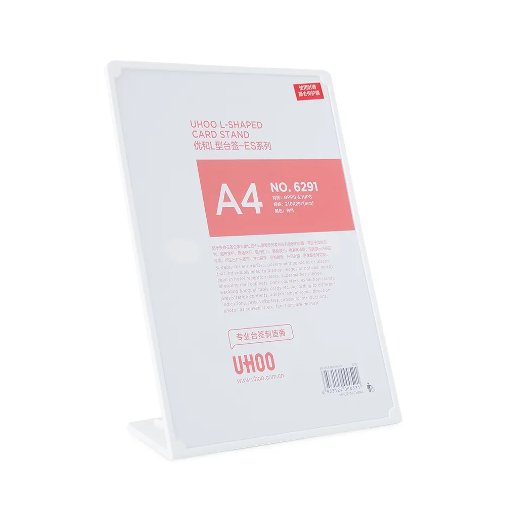 Expositor porta retrato A4 feito em poliestireno com placa acrílica.
