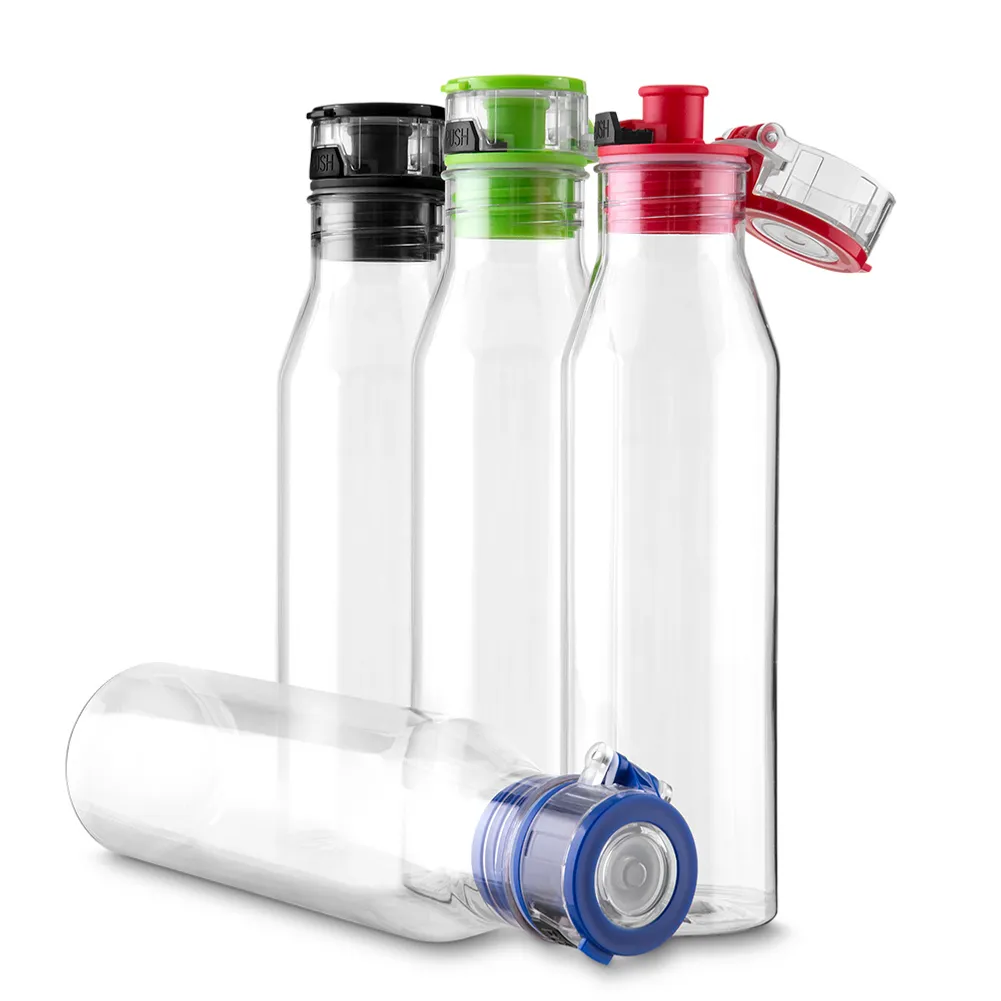 Garrafa plástica 700 ml com tampa e alça de mão em cores, plástico utilizado tritan. Dimensão Produto:27,5xø7cm Peso do produto:0,286kg Embalagem: Saco Plástico Quant. por Caixa:50pçs Dimensão Caixa:38x38x57cm Peso da Caixa: 15,3kg