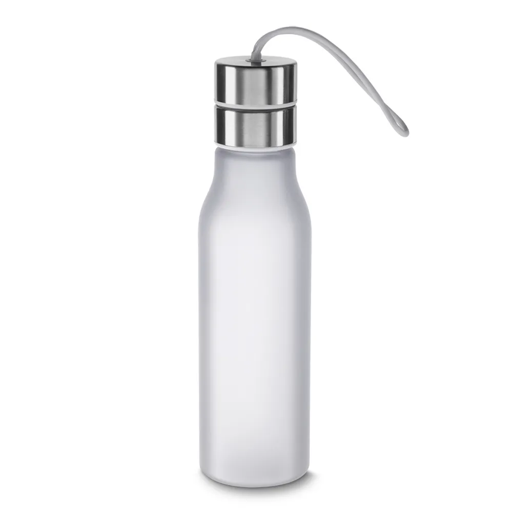 Garrafa plástica 600 ml com filtro, alça de silicone e tampa de metal, plástico utilizado PC (policarbonato) Dimensão Produto: 25,0xø6,4x21cm Peso do Produto: 0,120kg Embalagem: Caixa Branca+saco plástico Quant. por Caixa: 50pcs Dimensão Caixa: 71x36x27cm Peso da Caixa: 8,60kg