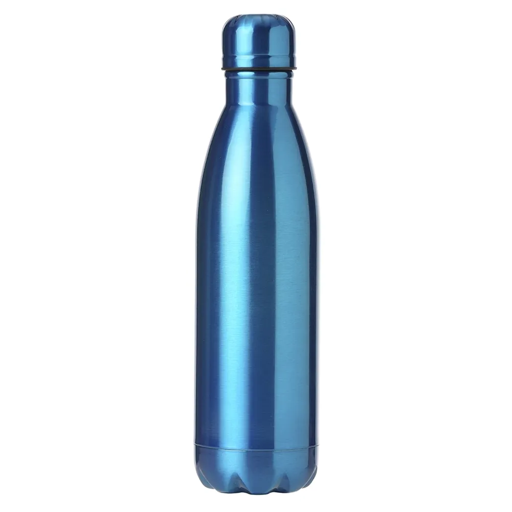 Garrafa de inox com capacidade de 750ml, contém tampa rosqueável e pintura com acabamento brilhante.
