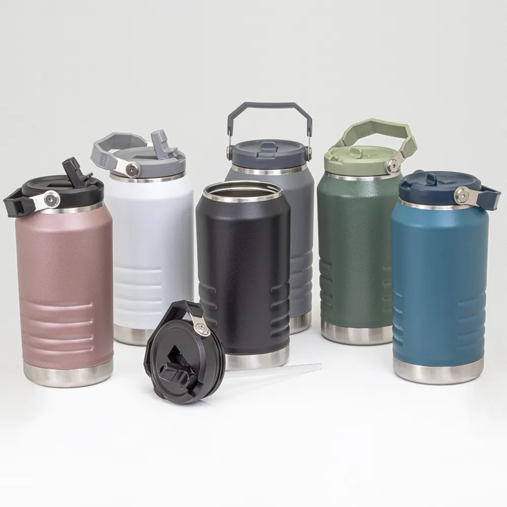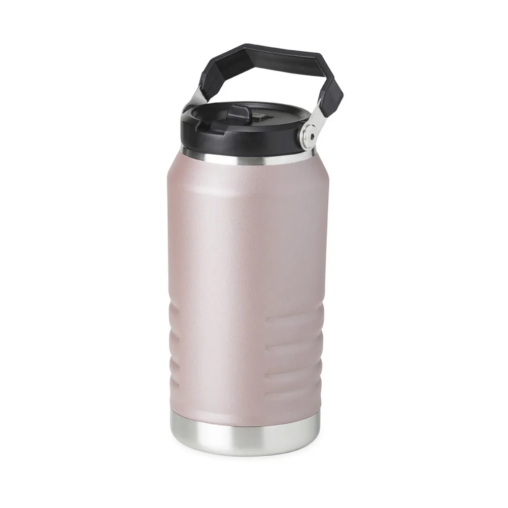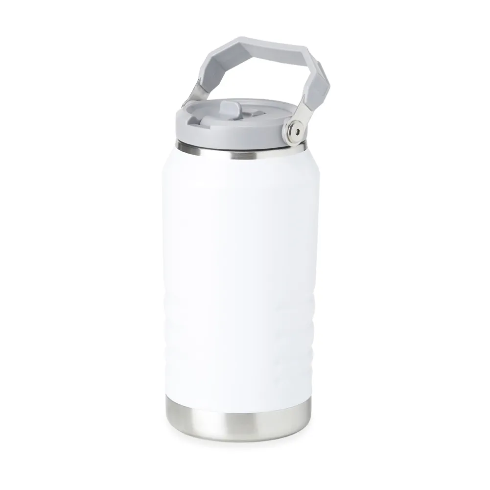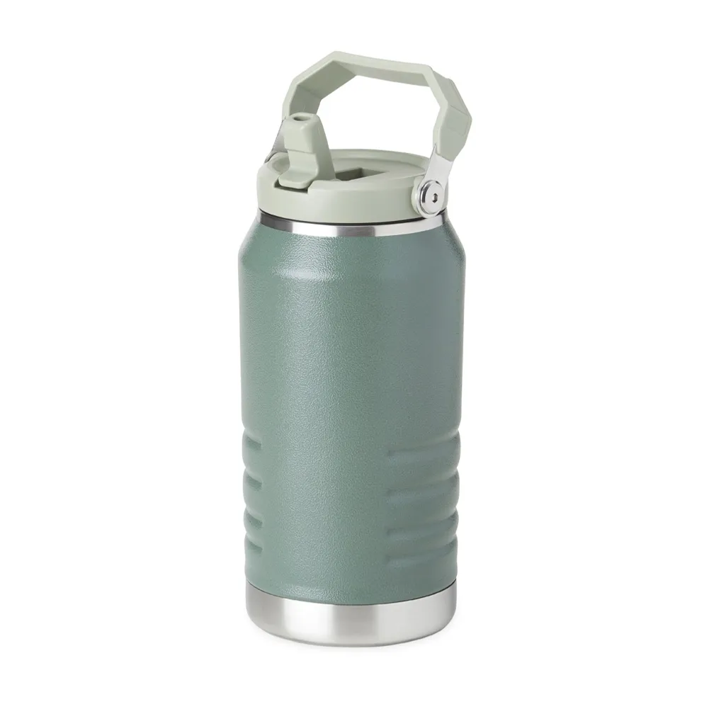 Garrafa térmica feita em inox 304 com parede dupla, capacidade de 1,1 litros. Com alça para transporte, a tampa contém bico flip e canudo interno.
