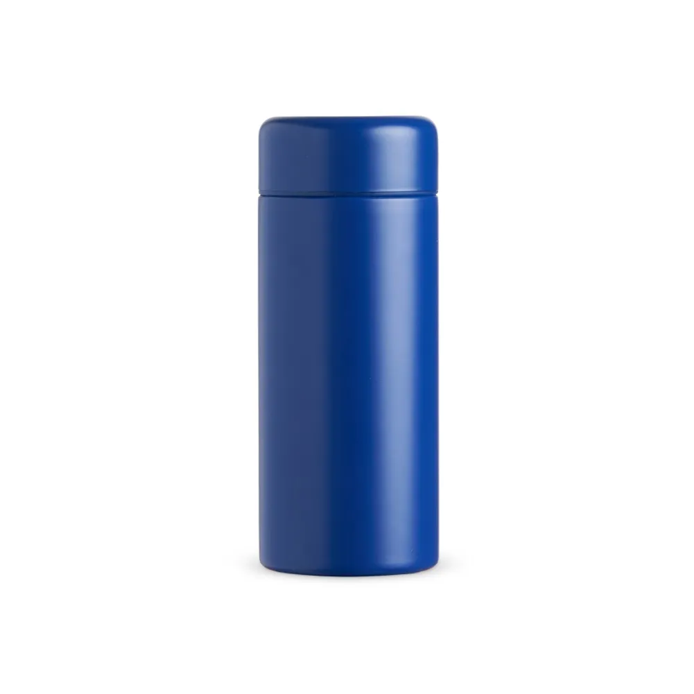 Garrafa térmica inox de parede dupla com capacidade de 200ml.
