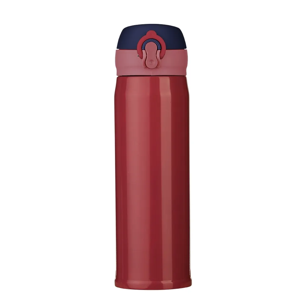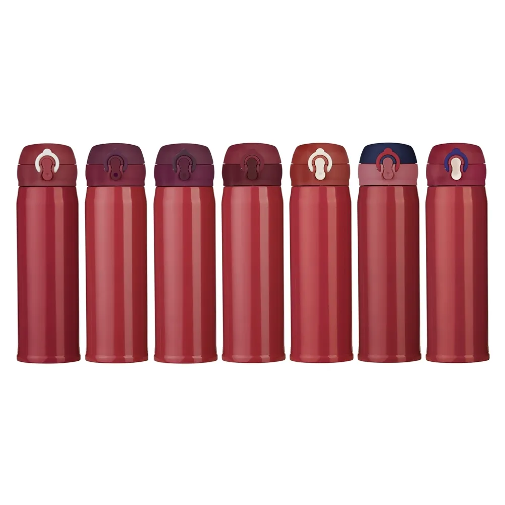 Garrafa térmica feita em inox com parede dupla, capacidade de 400ml. Tampa com trava de segurança e botão de acionamento. OBS.: CONSULTE A VARIAÇÃO DE CORES ATRAVÉS DA PALETA DE CORES!