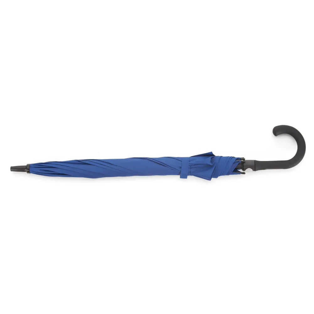 Guarda-chuva com cabo plástico emborrachado e haste de metal, botão acionador para abertura automática, oito varetas. Poliester 190T Pongee as compras acima de 20 peças você ganha a personalização em 2 gomos. A técnica utilizada é a Thermo Transfer.