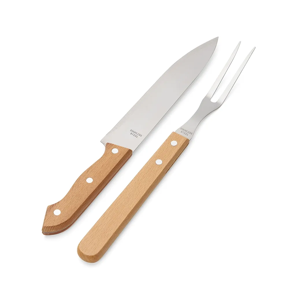 Kit churrasco 2 peças. Contém: garfo e faca, acompanha embalagem de kraft.