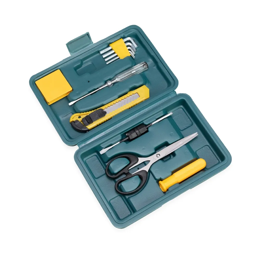 Kit ferramenta 11 peças em estojo de polietileno com trava de segurança. Acompanha: conjunto de 5 chaves Allen, chave teste, trena de 1 metro, estilete, chave dupla (Phillips e Fenda), tesoura e cabo plástico para encaixe da chave dupla.