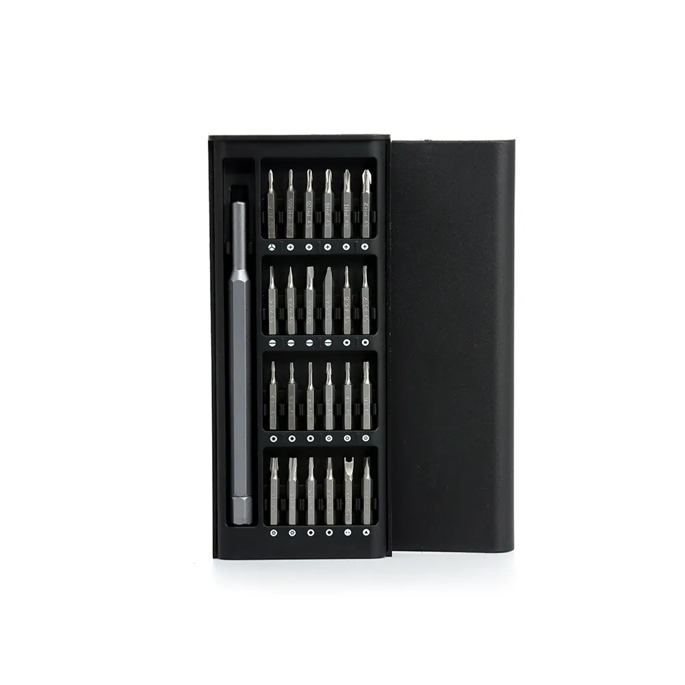 Kit ferramenta com 25 peças em estojo plástico com tampa de encaixe. Contém: 1 chave extensora rotatória para conexão das ponteiras, 1 ponteira Tri-Wing, 5 ponteiras Phillips, 4 ponteiras fenda, 10 ponteiras Torx, 2 ponteira Allen, 1 ponteira spanner e 1 ponteira fenda triangular.