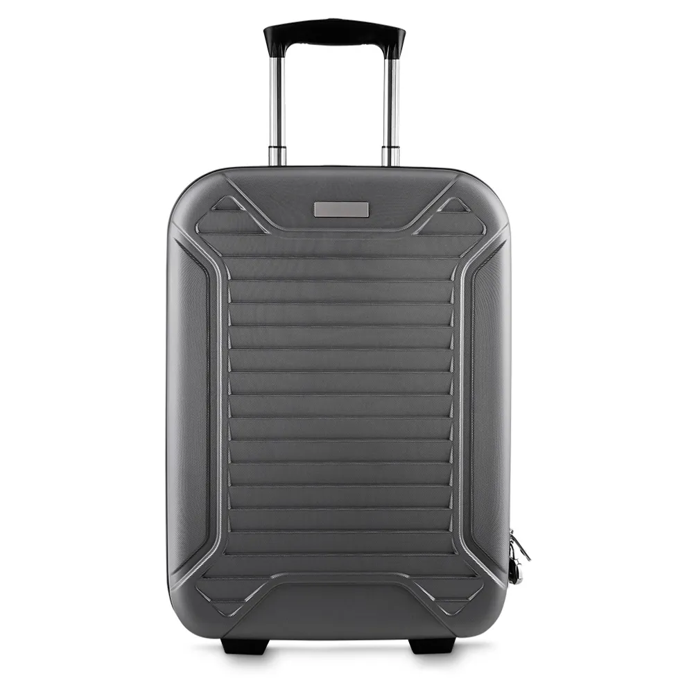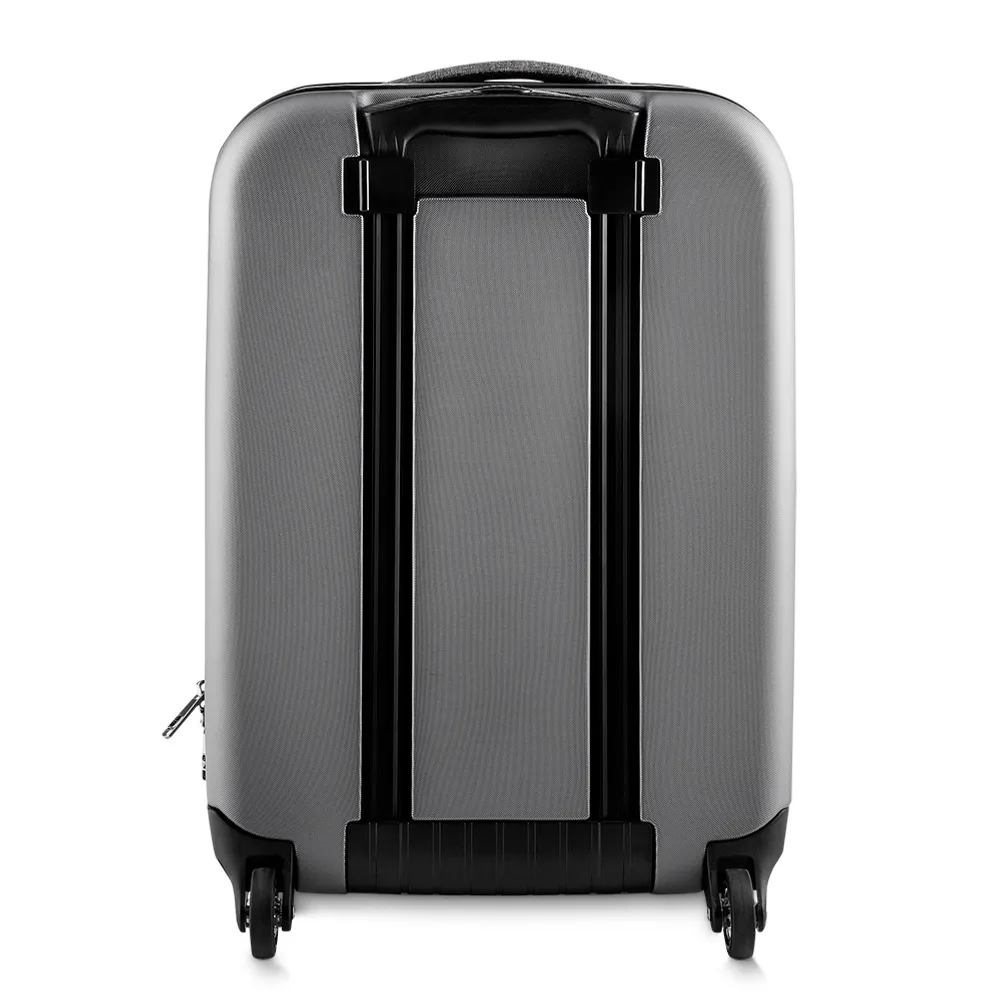 Mala de viagem pequena 43 litros em ABS e lateral em nylon. A mala possui bolso lateral com velcro, alça de carrinho com botão para ajuste de tamanho, alça de mão e cinto protetor na parte interna.