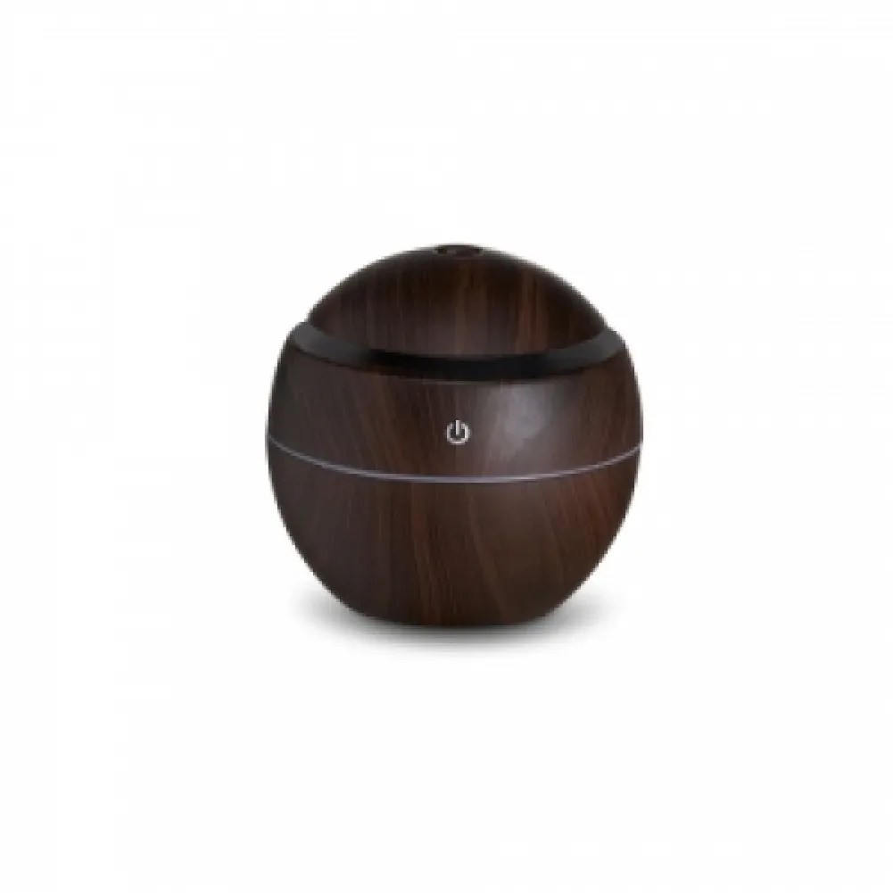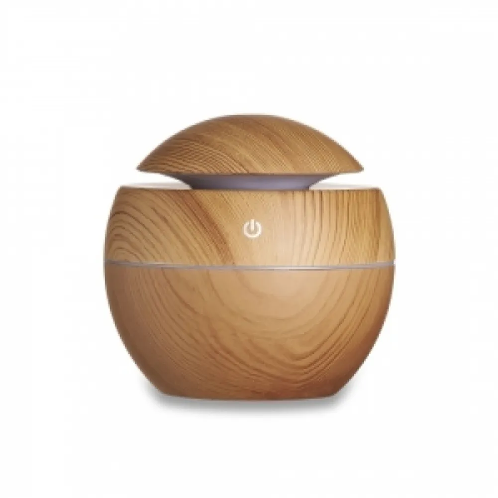 Mini umidificador ultrassônico com led que muda de cor. Acompanha filtro de algodão e um cabo USB. Capacidade para 130ml de água. Produzido em plástico e revestido por adesivo caracterizando madeira. Taxa de tensão DC5V e Taxa de consumo de 2W. O produto não retém energia, funciona somente com o cabo USB conectado a um meio de alimentação de energia. Obs.: para conservação do produto é recomendável utilizar água filtrada e não deve ser usado essências!