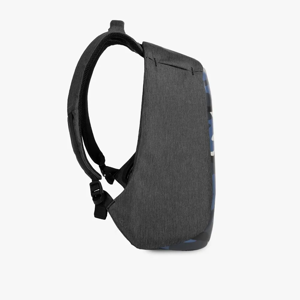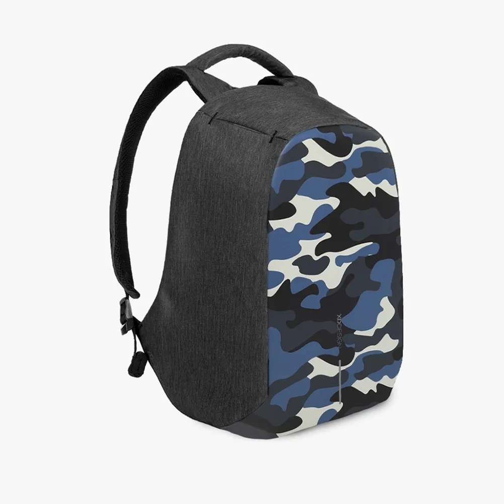 Mochila XD Design Bobby Print. Compacta, antifurto, zíperes YKK embutidos, bolsos ocultos, camada interna anticorte, tecido à prova d’água e antissuor, compartimentos para tablet e laptop resistentes a impactos. Mochila com distribuição de peso, faixas refletivas, 3 formas de abertura (30, 90 e 180 graus), faixa de fixação para mala e saída externa USB. Tecido Poliéster. Compartimentos: Tablet de até 9,7 polegadas e Notebook de até 14,0 polegadas.