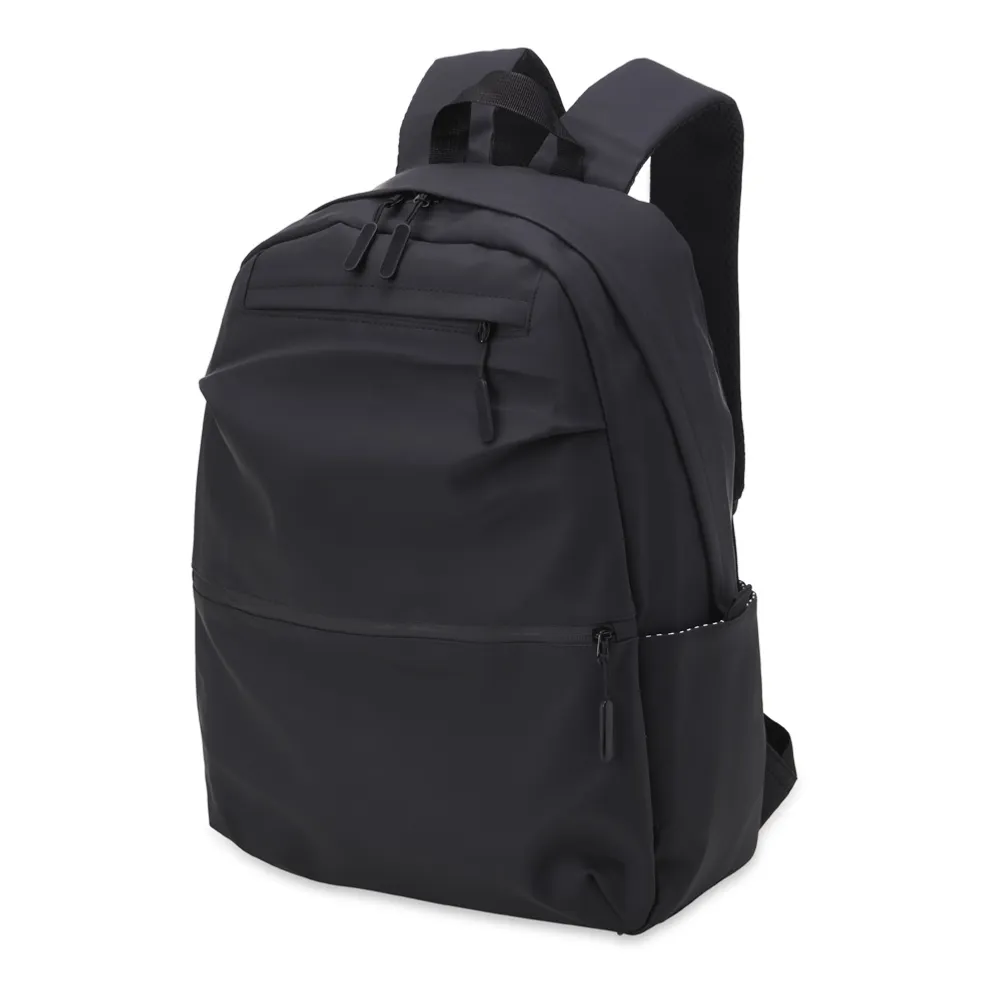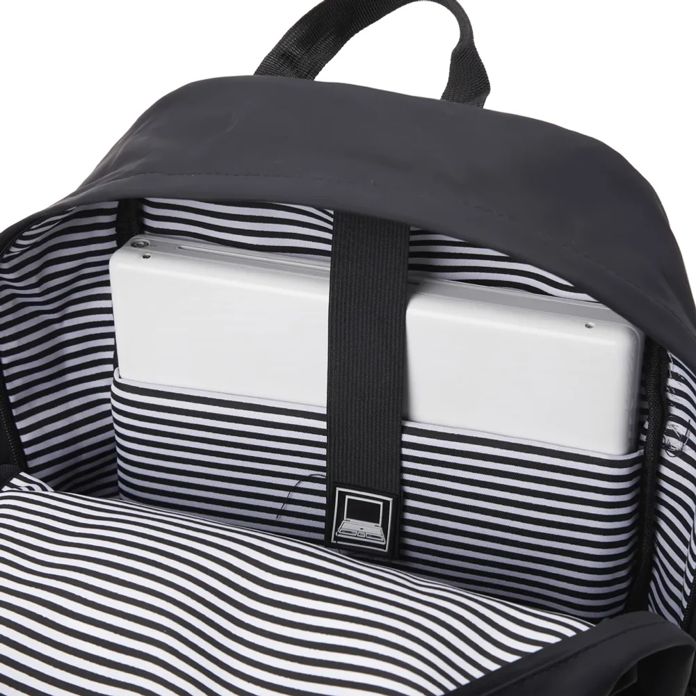 Mochila de couro sintético impermeável de 30 litros com três compartimentos, sendo o principal com bolso para notebook 15,6. Com bolsos laterais e interior listrado, a mochila possui alça para encaixe em malas de viagem, alça de mão e alças para as costas com revestimento espumado. Acompanha plaquinha metálica.