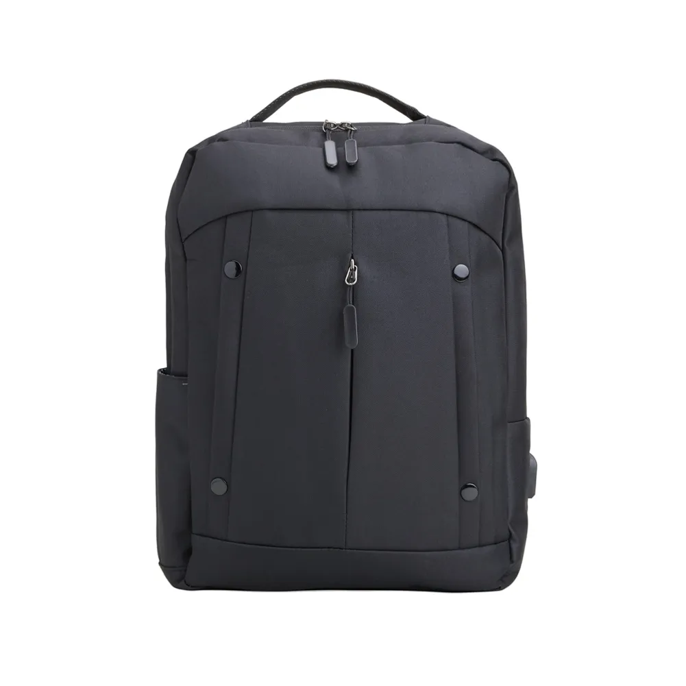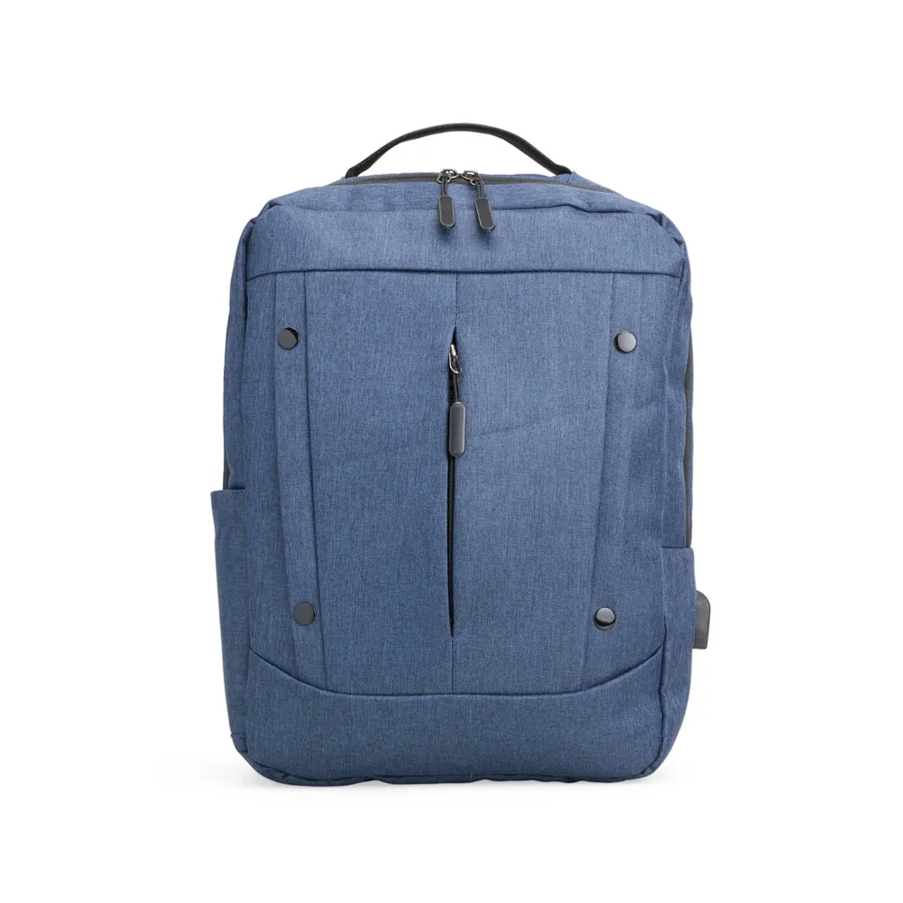 Mochila de nylon 21 Litros com dois compartimentos, sendo o principal com bolso para notebook 15,6. Com divisórias internas para acessórios, a mochila possui bolso lateral, suporte externo USB e alça para engate em malas de viagem.