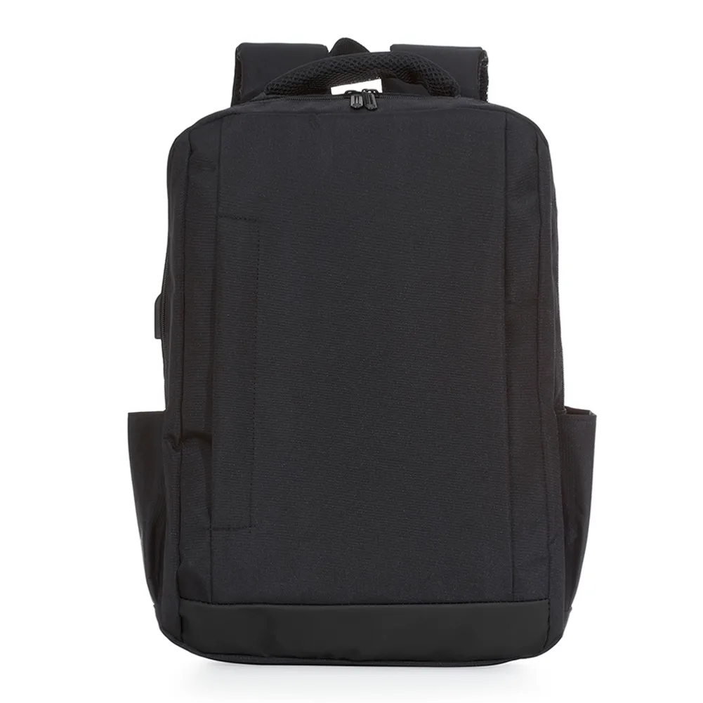 Mochila de nylon 27 litros com dois compartimentos, sendo o principal com bolso para notebook 15,6. Com divisórias internas para acessórios, a mochila possui bolsos laterais, suporte externo usb, duas alças de mãos e alça para engate em malas de viagem.
