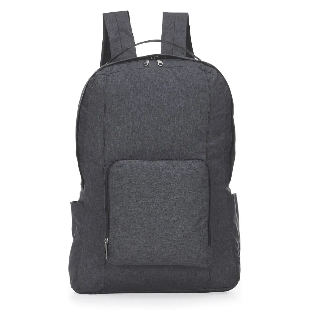Mochila dobrável em tecido poliéster. Parte externa: Alça de mão. Bolso frontal com zíper. Bolso lateral aberto. Zíper do compartimento principal protegido. A mochila dobrada transforma-se em um pacote de 21x20x5cm. Sem compartimento para Notebook. Medidas do produto:14x36x40cm Medidas do produto dobrado: 21x20x5cm Peso do produto: 0,250KG Embalagem: Saco plástico Caixa master: 40 peças Peso da Caixa master: 10.8Kg