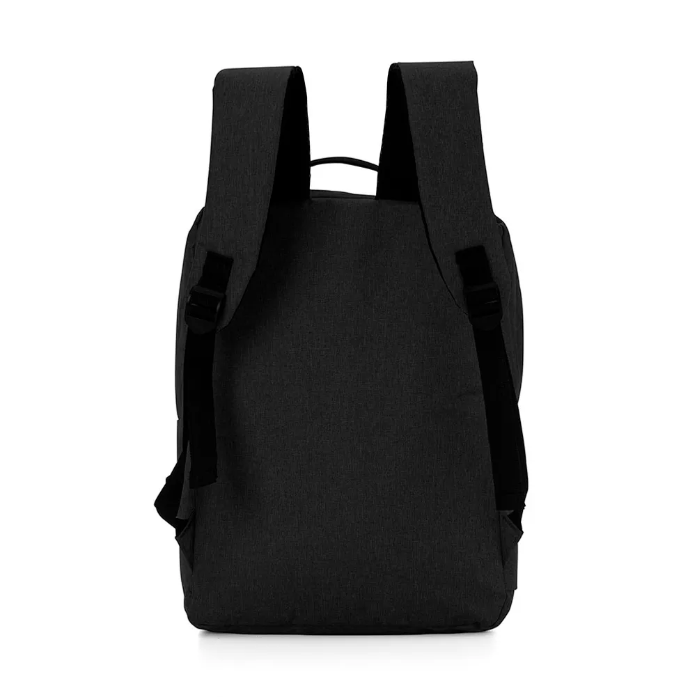 Mochila p/ Notebook em tecido poliéster. Parte externa: 2 Bolsos frontais com ziper; 1 Bolso lateral; Alça de mão e ombro acolchoadas; Conector USB externo na lateral. Parte interna: Compartimento acolchoado p/ notebook de 39x27cm; Tamanho total do Notebook - 17¨ 2 Porta Objetos; 2 Porta Canetas. Dimensão do Produto: 11x29x42cm Peso do Produto: 0,526kg Quant. por Caixa: 15pçs Embalagem: Saco plástico Dimensão da Caixa: 45x31x53cm Peso da Caixa: 8,5kg