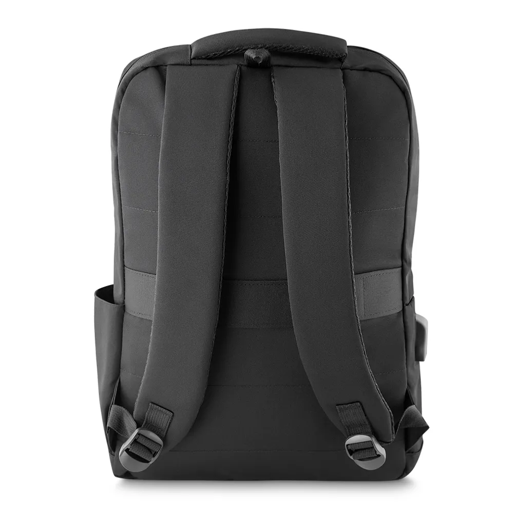 Mochila p/ Notebook em tecido poliéster. Parte externa: Conector USB e áudio P2 na lateral, ligado ao interior da mochila via cabos. Bolso frontal com abertura na lateral. Bolso na lateral. Alça de ombro e mão acolchoadas. Encaixe p/ mala de viagem. Parte interna: Compartimento acolchoado p/ notebook 40x28cm. Tamanho total do Notebook - 17¨ Três bolsos internos, porta tablet, celular e carteira. Dimensão do Produto: 9x31x45cm Peso do Produto: 0,650kg Quant. por Caixa: 16pçs Embalagem: Saco TNT branco + Saco plástico Dimensão da Caixa: 67x46x30 Peso da Caixa: 11,5Kg