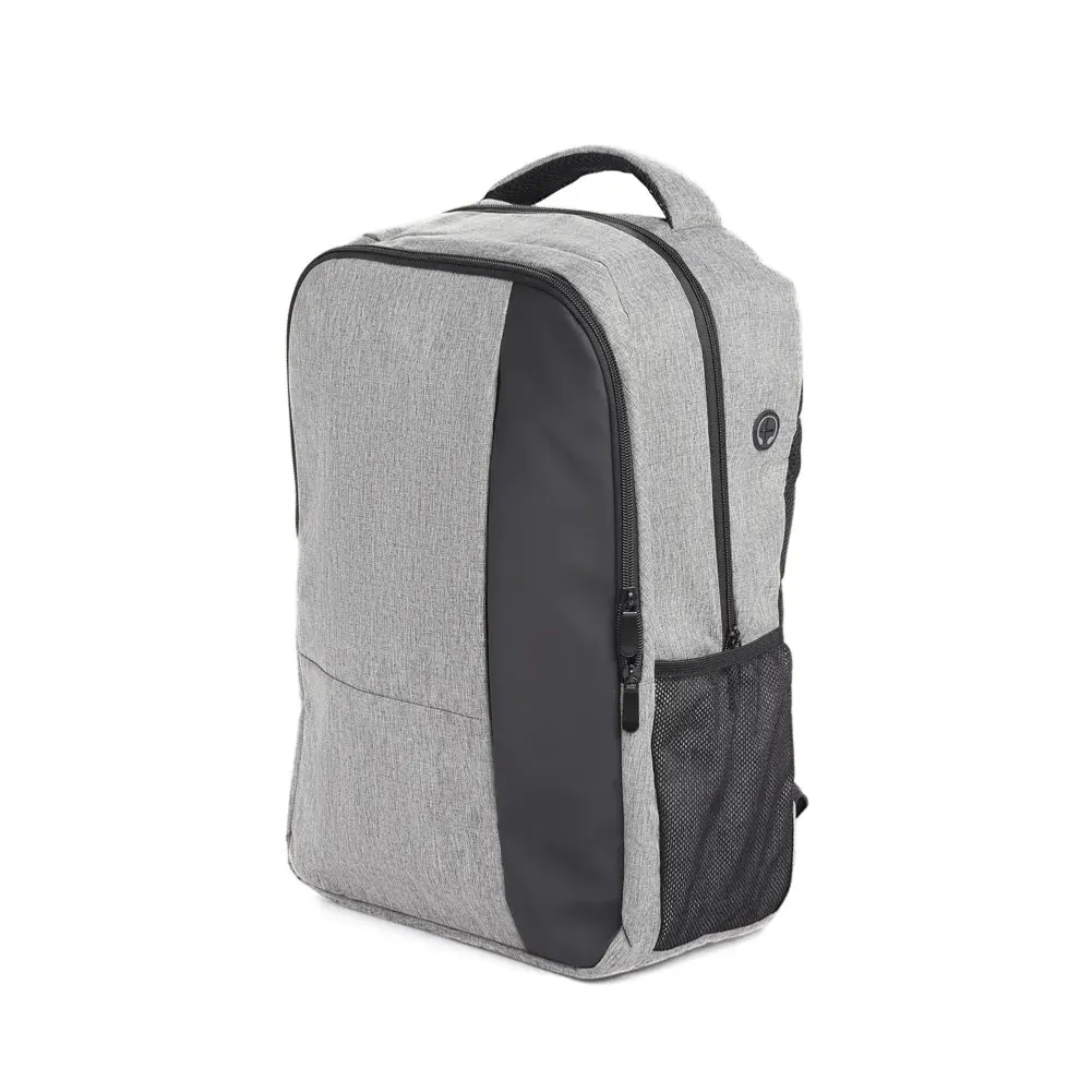 Mochila para notebook em tecido poliéster 300D. Parte externa: 2 compartimentos, 2 bolsos laterais. Saída USB e fone de ouvido. Alça de mão e ombro acolchoada. Parte interna: Divisórias internas para canetas, documentos, telefone celular e porta chaves. Compartimento acolchoado para notebook de até 15” Dimensão Produto: 45x32x17cm Peso do Produto: 0,570kg Capacidade: 33L Embalagem: Saco Plástico Peso da Caixa: 12,2kg Dimensão da Caixa: 49x36x60cm Quantidade de Peças:20pçs