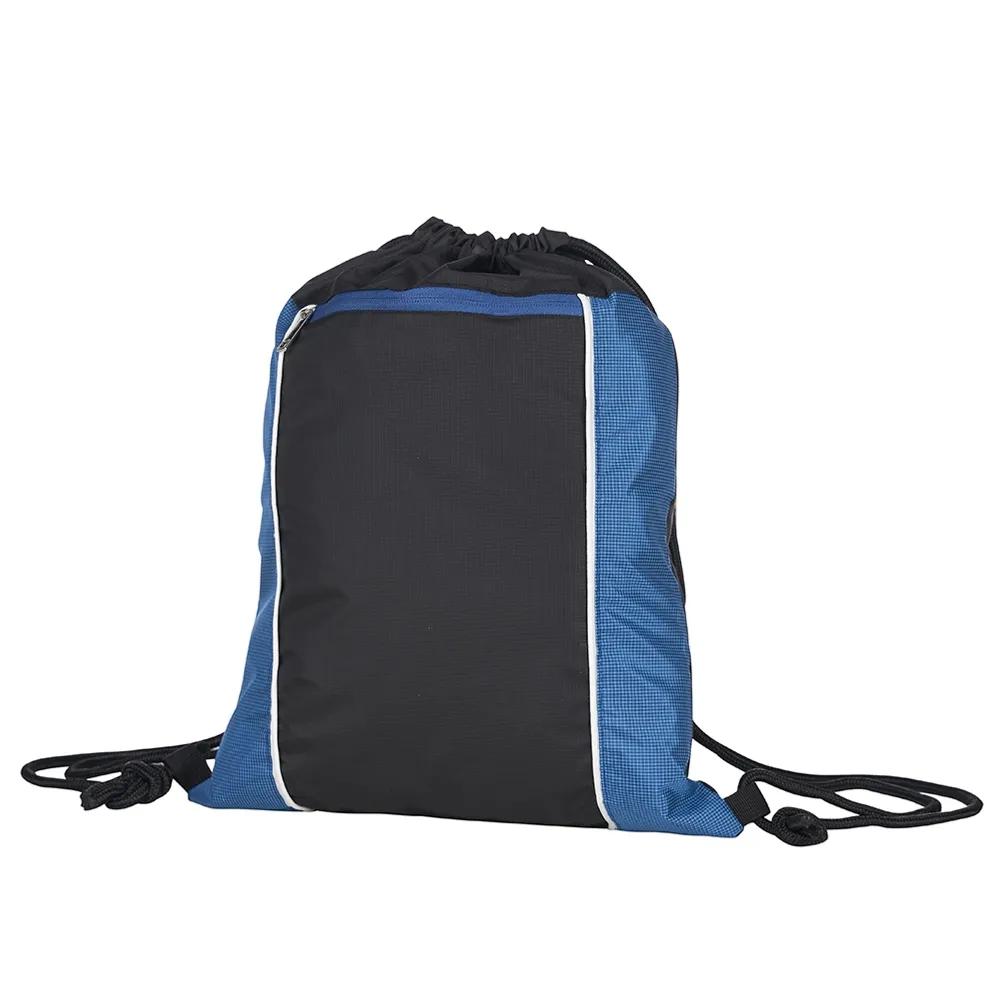 Mochila saco em fibra de poliéster resistente à água com bolso frontal.