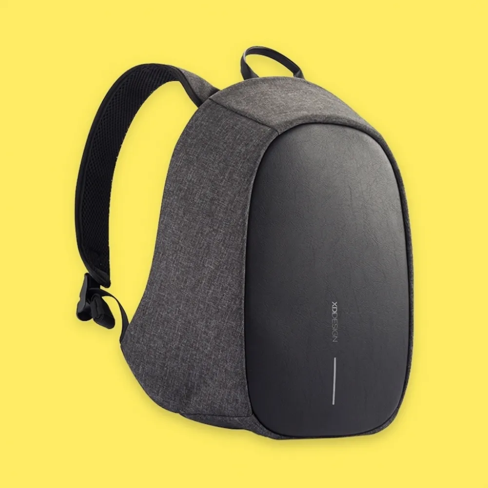 Mochila XD Design Elle Protective. Com sistema de alarmes sonoro e silencioso (SOS APP). Alarme sonoro para afastar o agressor. Sinal silencioso emitido pela Elle Protective para as até 3 pessoas predefinidas no SOS APP, com o pedido de ajuda e localização exata. Bateria recarregável que apita quando estiver acabando. Possui camada interna anticorte, resistência à água, distribuição de peso (diminui até 20% o impacto do peso na sua coluna), 3 formas de abertura (30, 90 e 180 graus), faixas refletivas para segurança noturna, compartimentos internos para organização e zíperes embutidos.