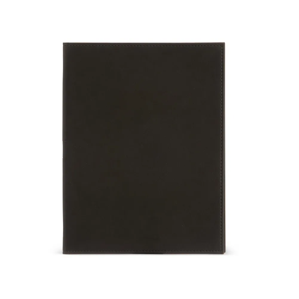Pasta convenção de couro sintético, possui porta caneta, compartimento para arquivar documentos, dois bolsos para cartões e um bloco com aproximadamente 25 folhas brancas não pautadas.