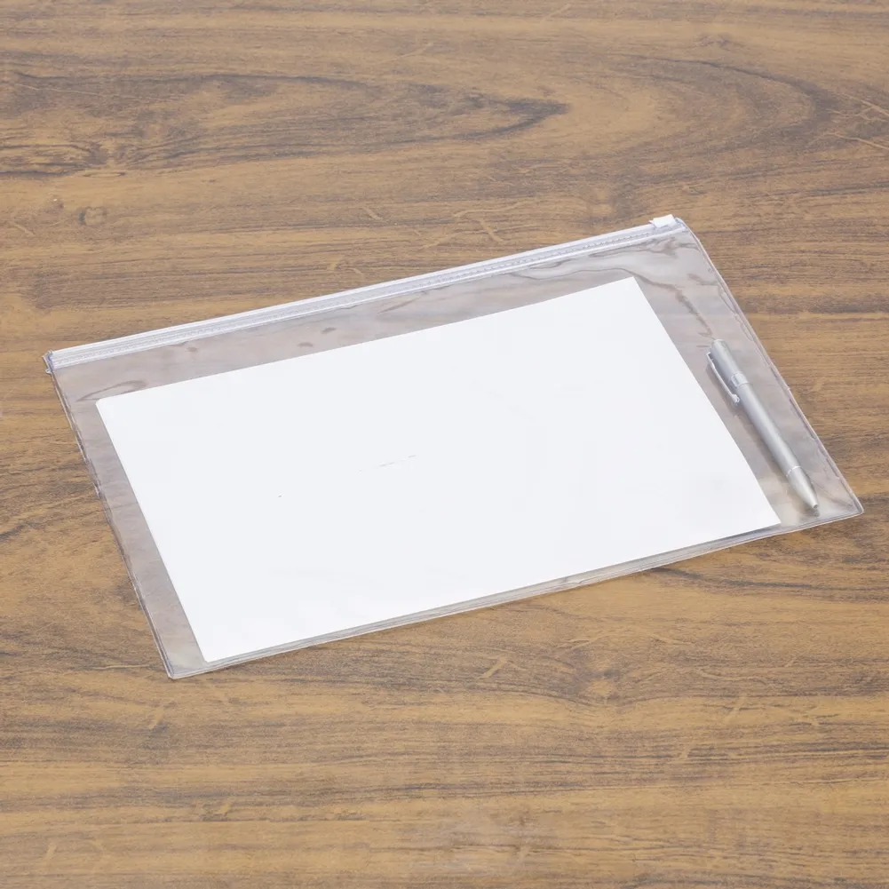 Pasta de pvc cristal transparente com fechamento zip zap. OBS.: Para prolongar a vida útil do material pvc, atente-se as condições ideais de armazenamento: mantenha o material em local seco e arejado, livre da exposição ao sol e altas temperaturas.
