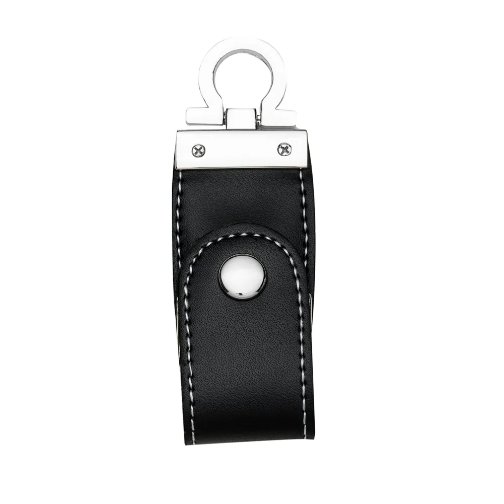 Pen drive 4GB/8GB/16GB de couro sintético com costura, possui botão e detalhes prata(verso liso). Parte inferior possui “argola” para utilizar como chaveiro.
