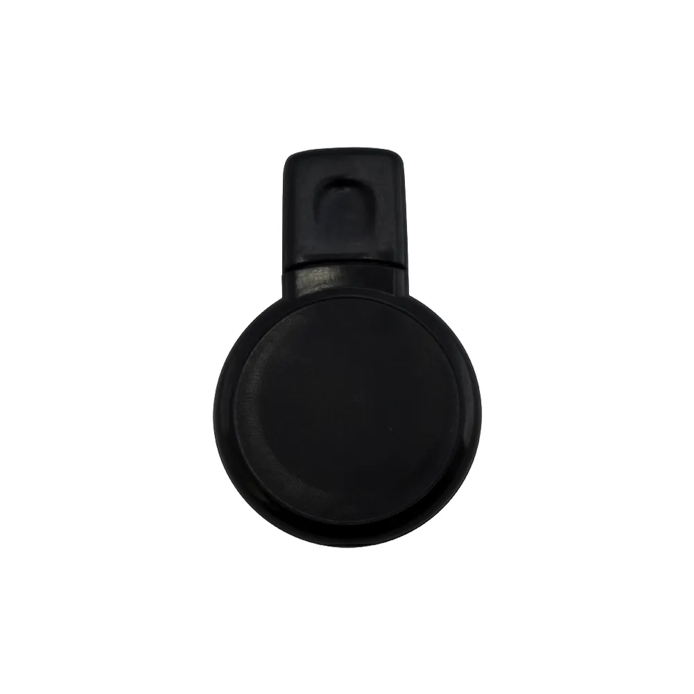 Pen drive redondo 4GB/8GB em plástico resistente, parte central lisa de ambos lados. Possui tampa e quando conectado uma luz vermelha acenderá.