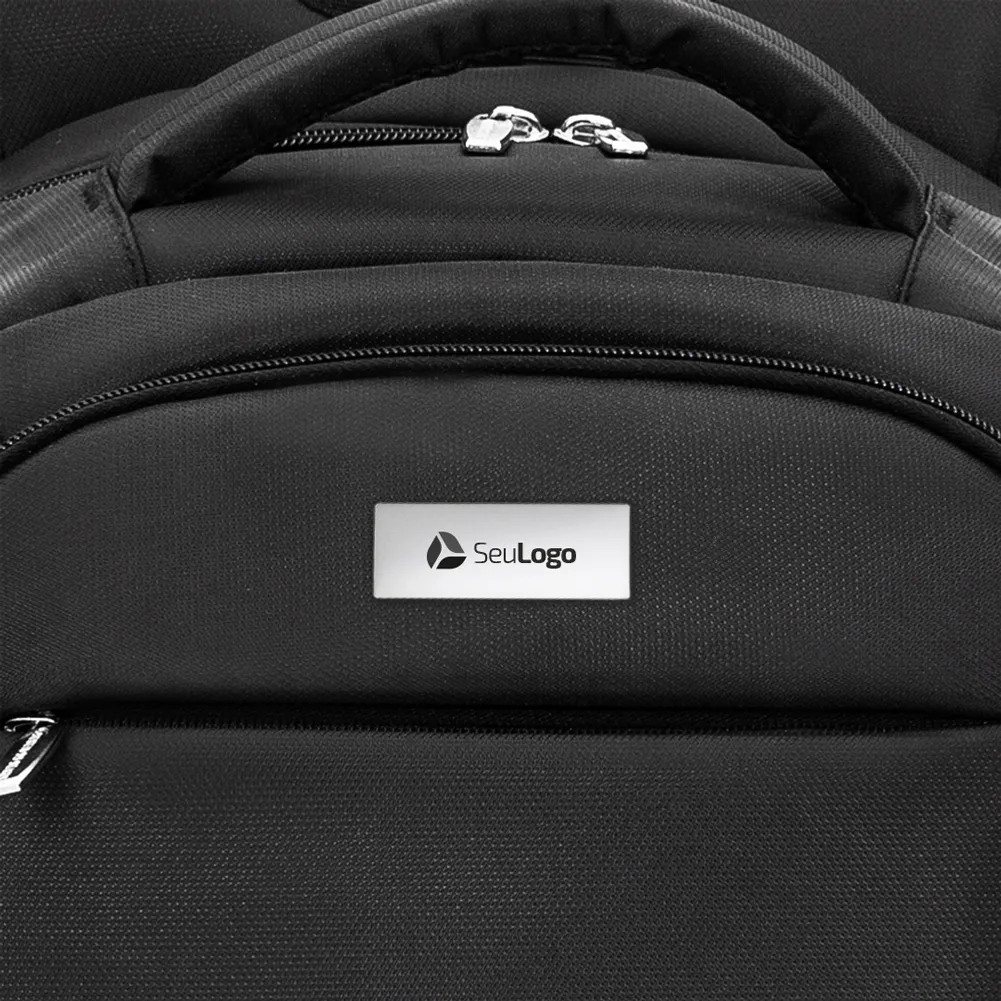 Plaquinha metálica para personalização. Possui acabamento fosco, hastes sem ponta na parte traseira, para fixação fure o tecido, encaixe e dobre as hastes.