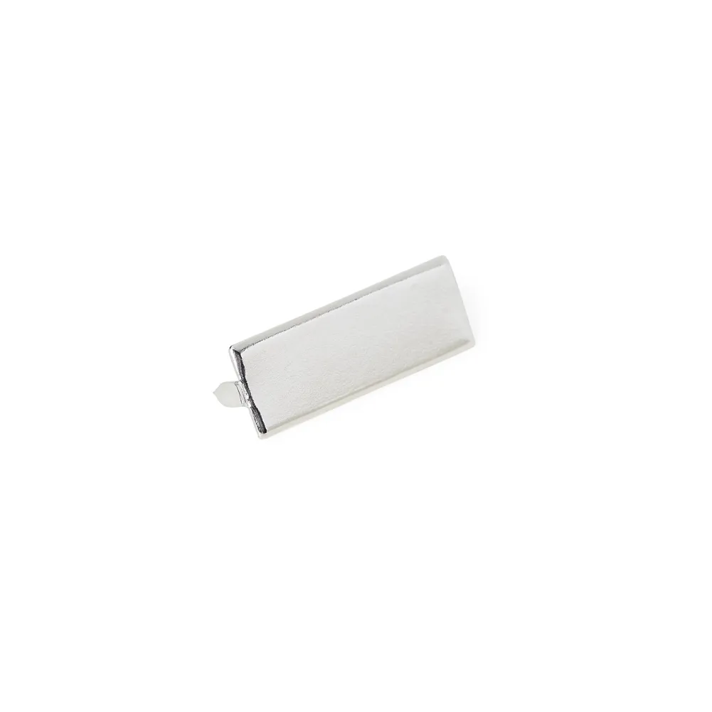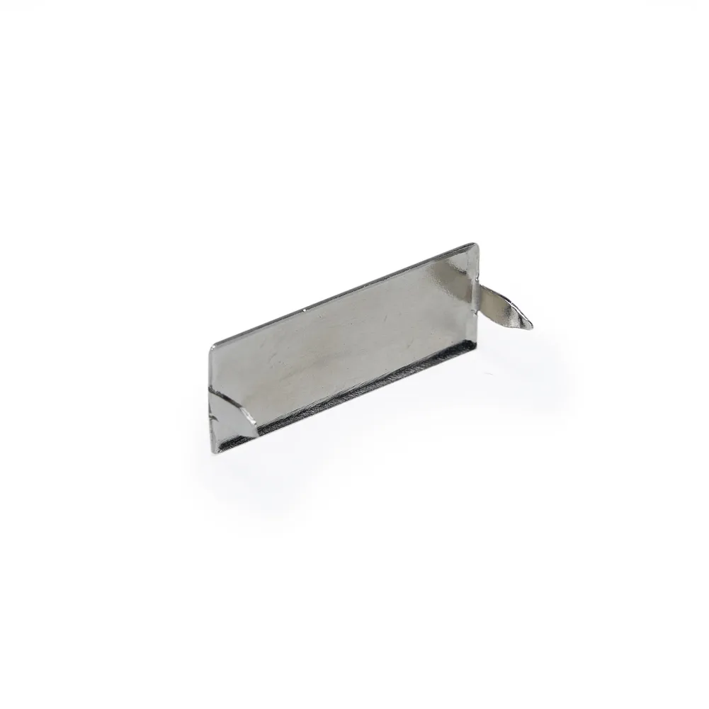 Plaquinha metálica retangular para personalização. Possui hastes com ponta na parte traseira.
