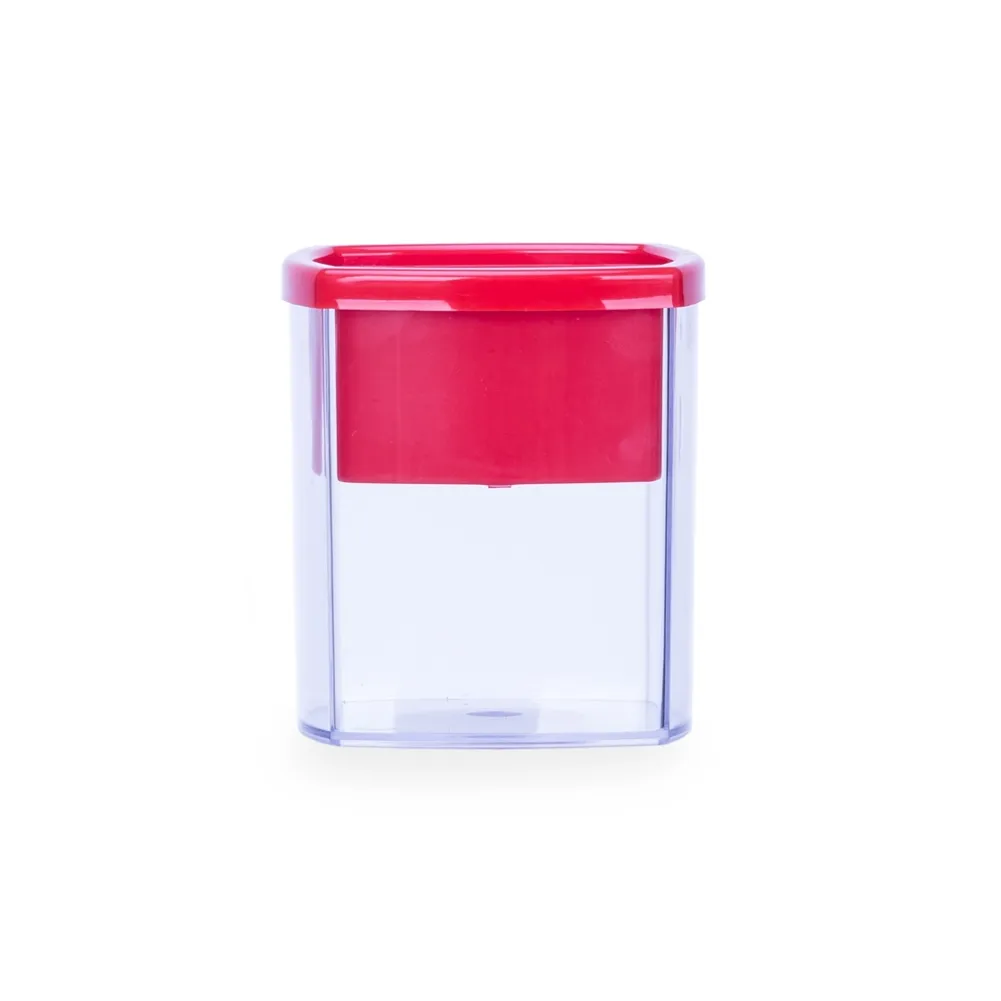 Porta caneta plástico com porta clips. "Copo" plástico resistente com parte interna colorida removível, tem duas separações para canetas e separação designada para clips.