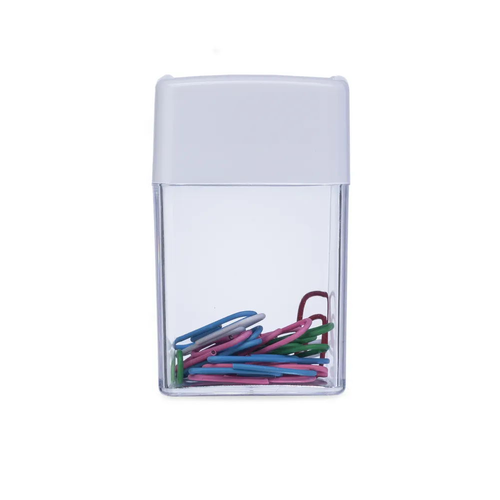 Porta-clips magnético em plástico, acompanha clips coloridos.