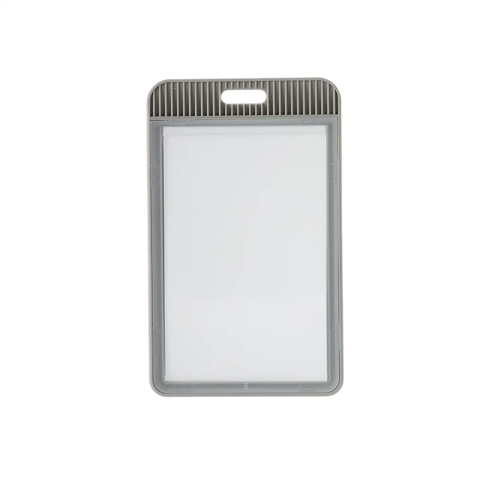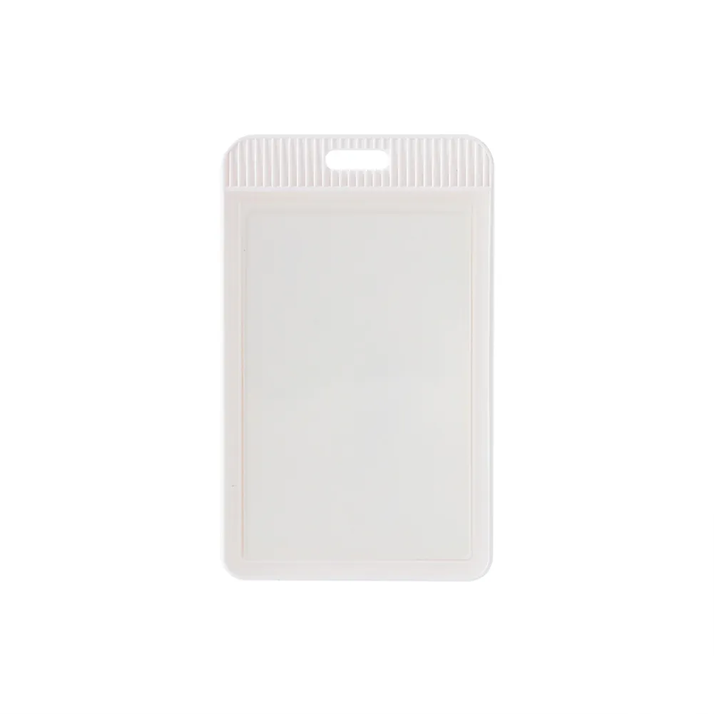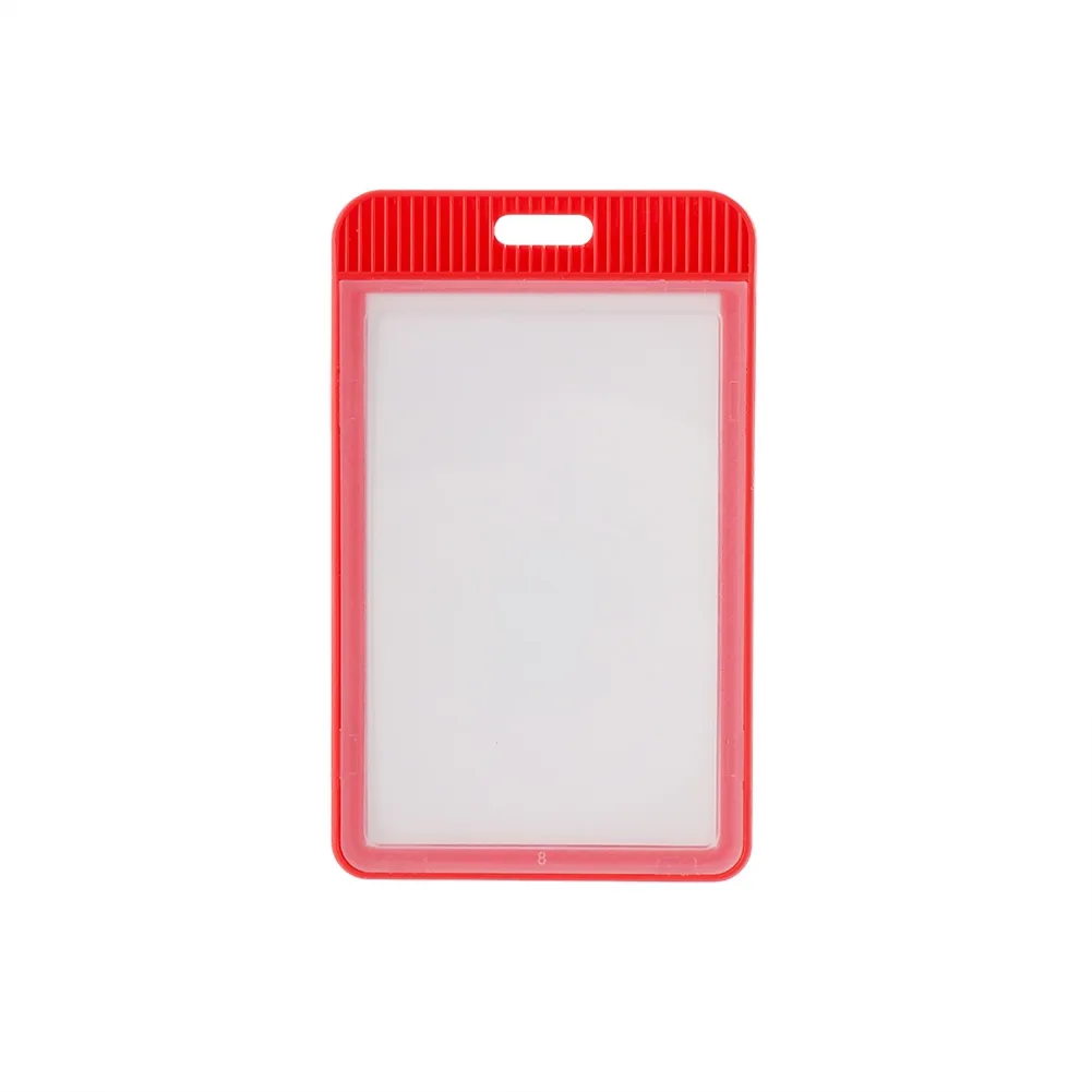 Porta crachá ou porta credencial em plástico resistente. Suporte com visor transparente removível e abertura superior para prender o cordão.