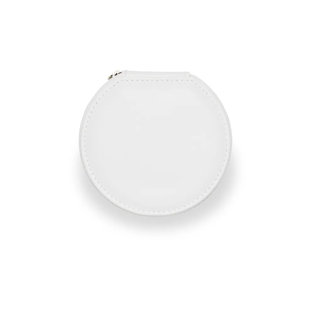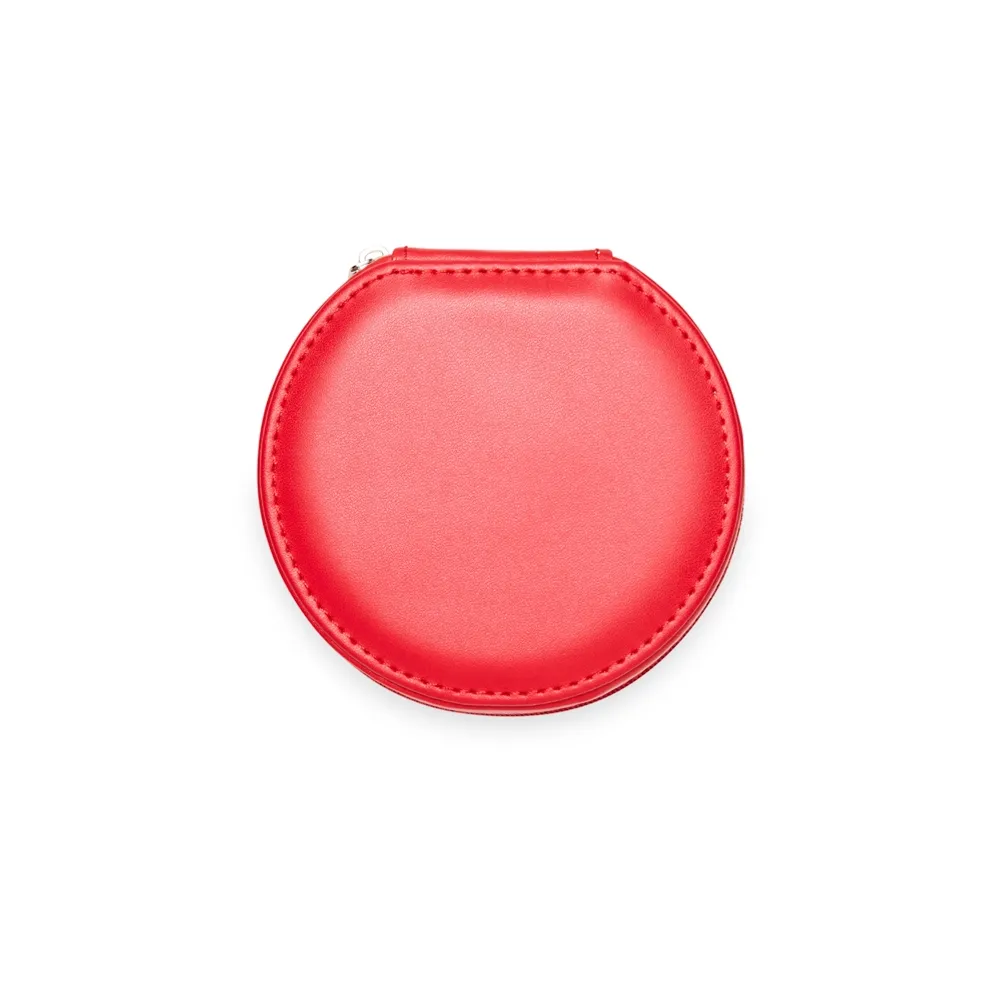 Porta joias de couro sintético com revestimento aveludado. Possui compartimentos internos para anéis, brincos, pulseiras e colares.