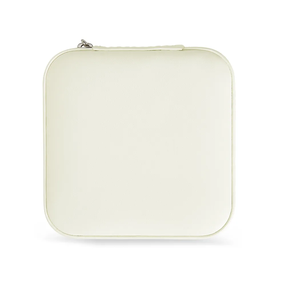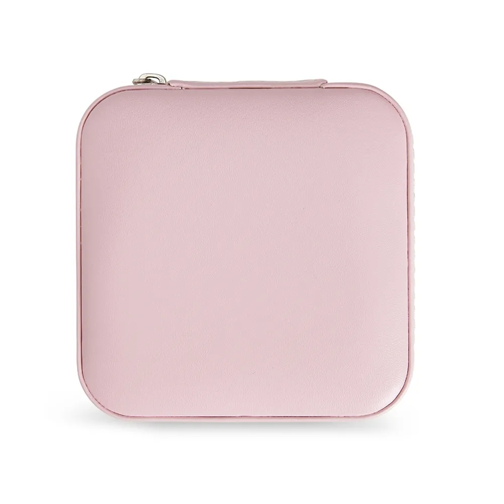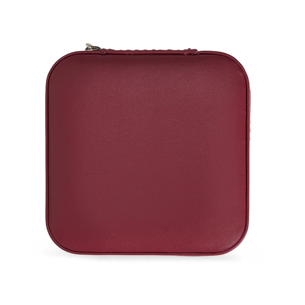 Porta joias de couro sintético com revestimento aveludado. Possui compartimentos internos para anéis, brincos, pulseiras e colares.