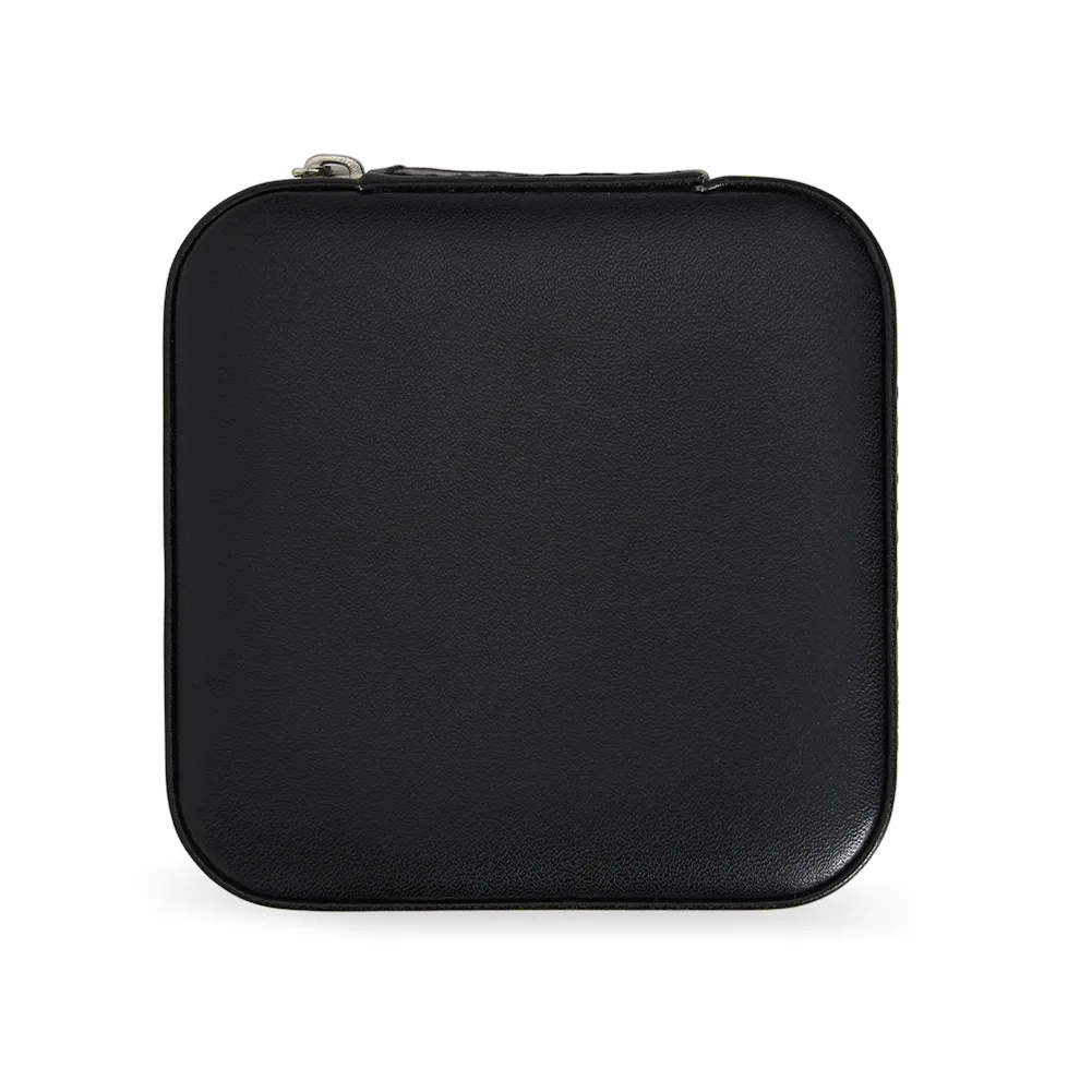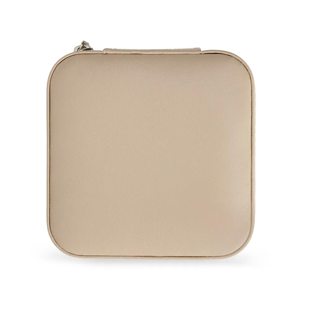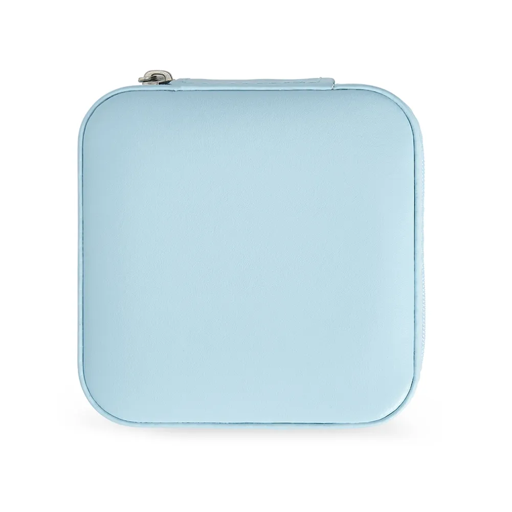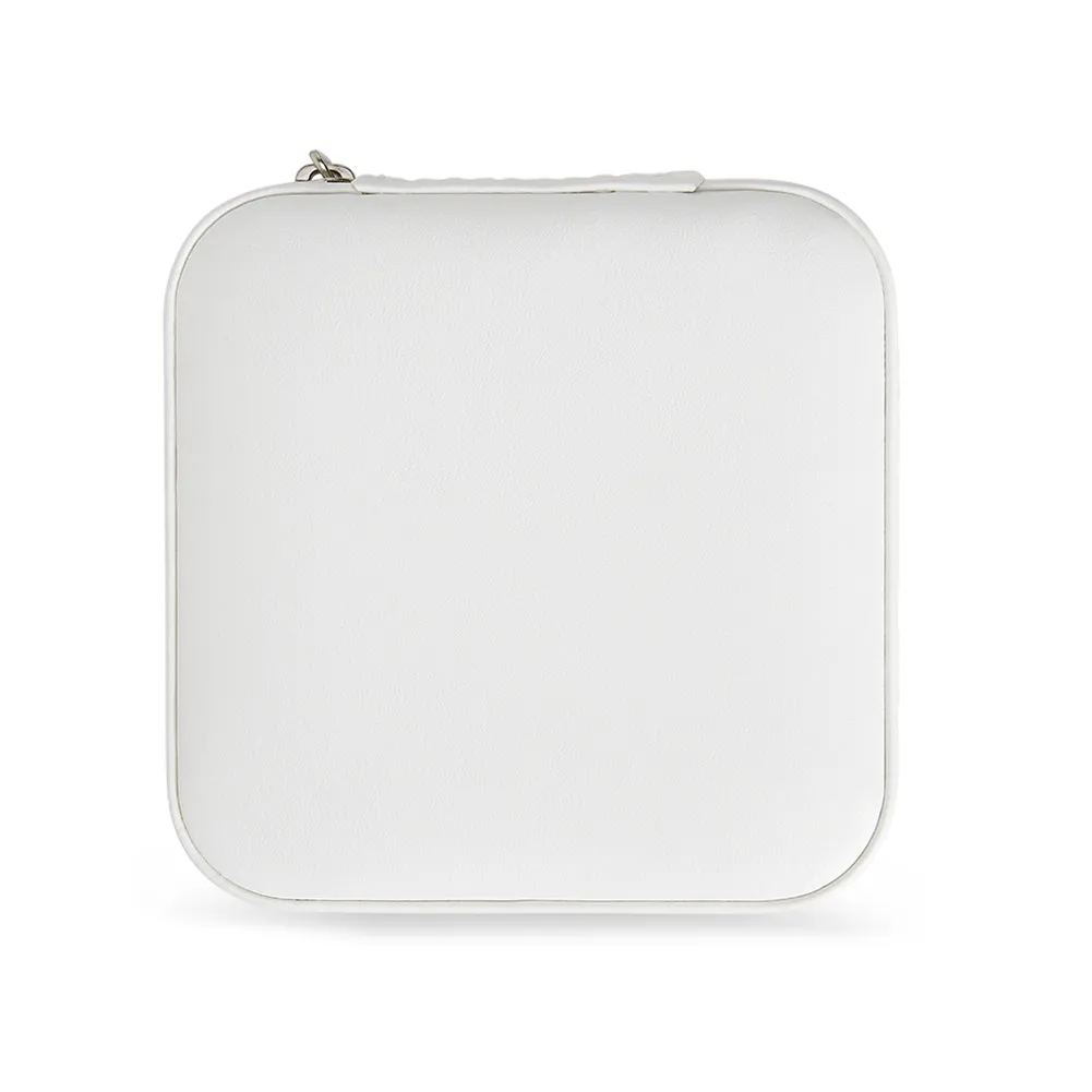 Porta joias de couro sintético com revestimento aveludado. Possui compartimentos internos para anéis, brincos, pulseiras e colares.