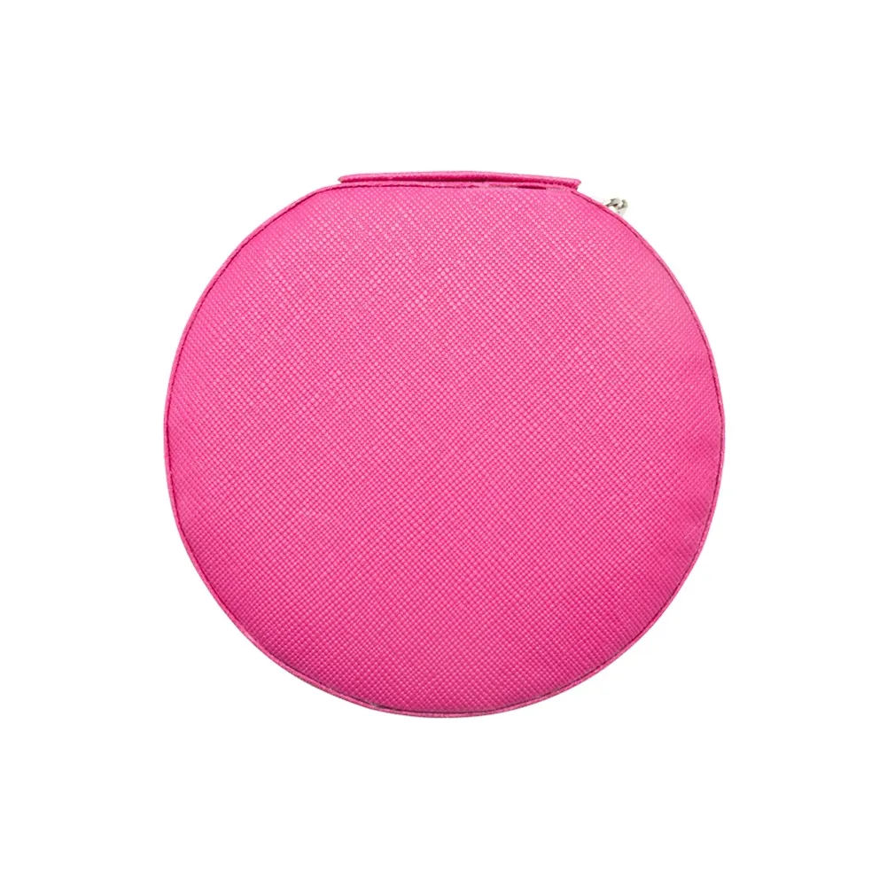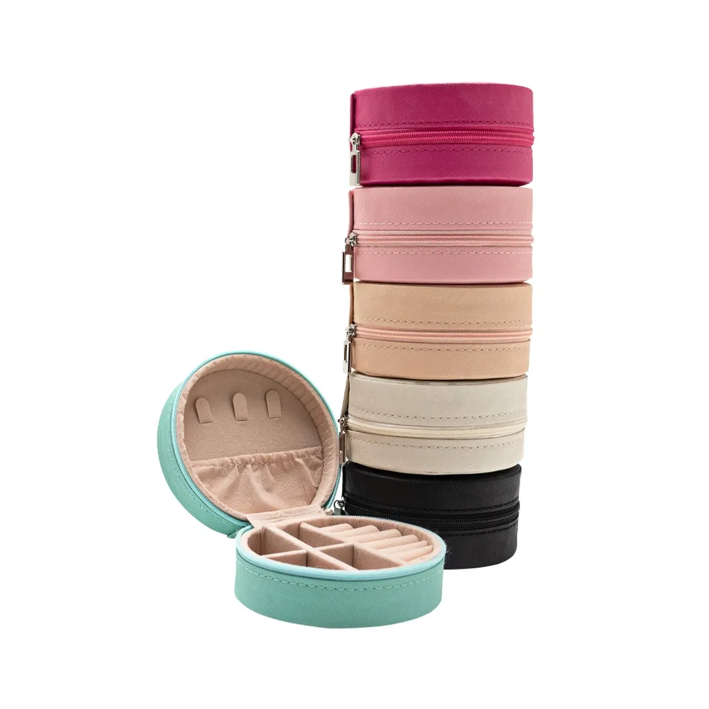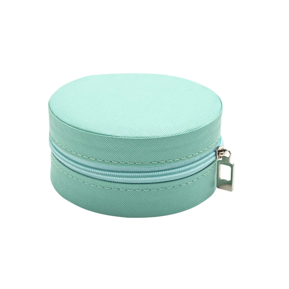 Porta joias de couro sintético com revestimento aveludado. Possui compartimentos internos para anéis, brincos, pulseiras e colares.