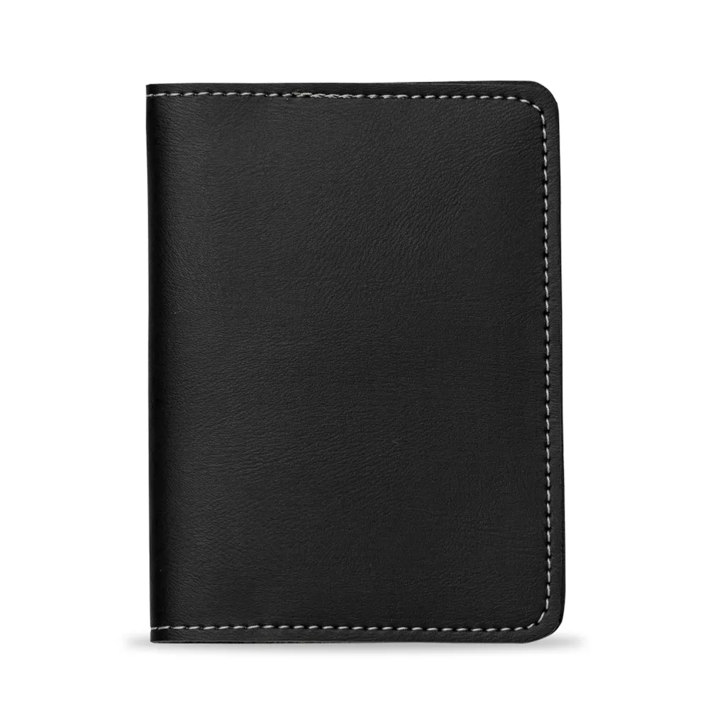 Porta passaporte Bidins em couro sintético, possui três compartimentos na lateral para cartões.